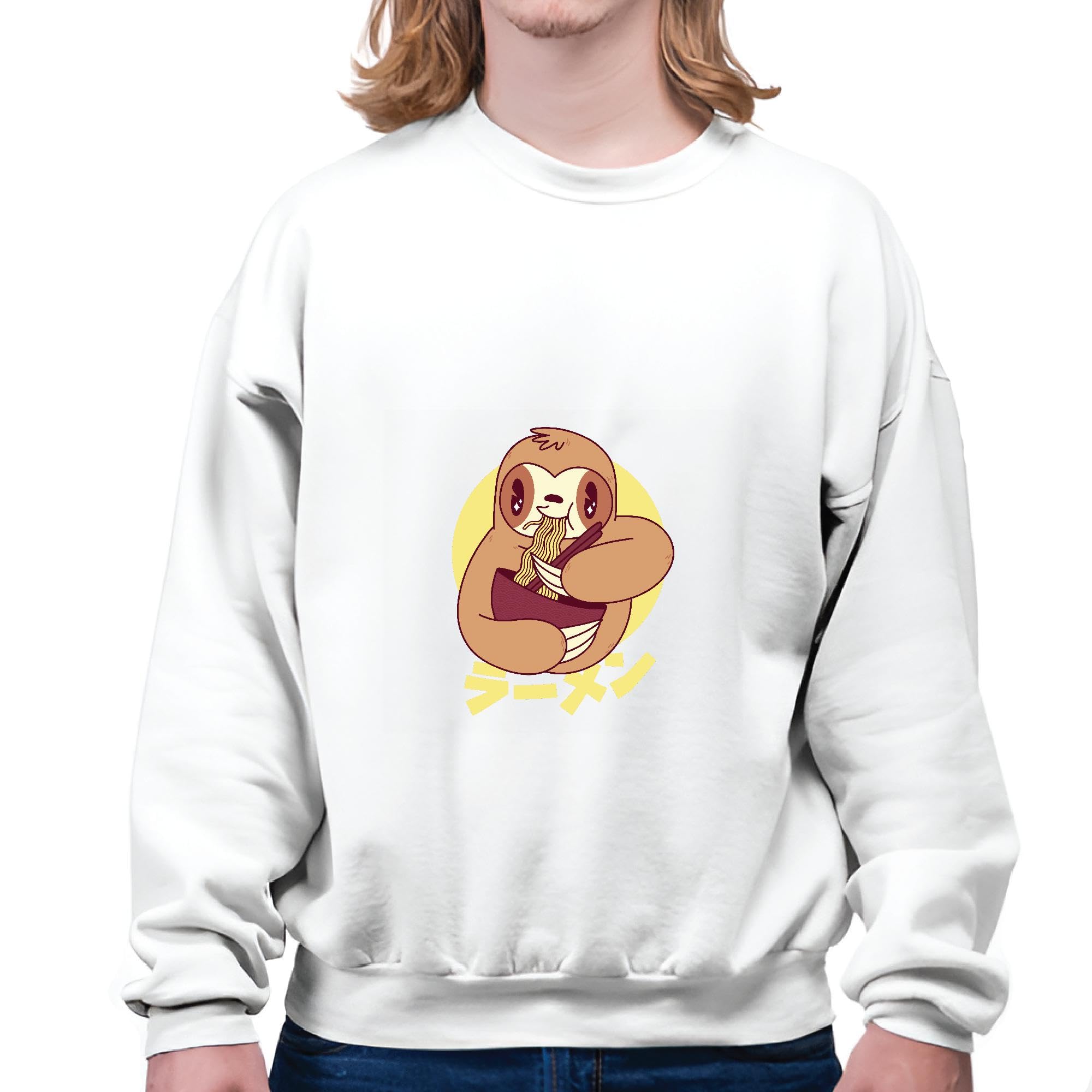Sloth Eating Ramen Gift for Kids and Adults Fun Sloth Design Grey White Muticolor Unisex Sweatshirt