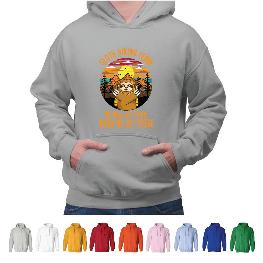 Sloth Hiking we will get there when we get there funny for Hiker Outdoor Activities Gray and Muticolor Unisex Hoodie