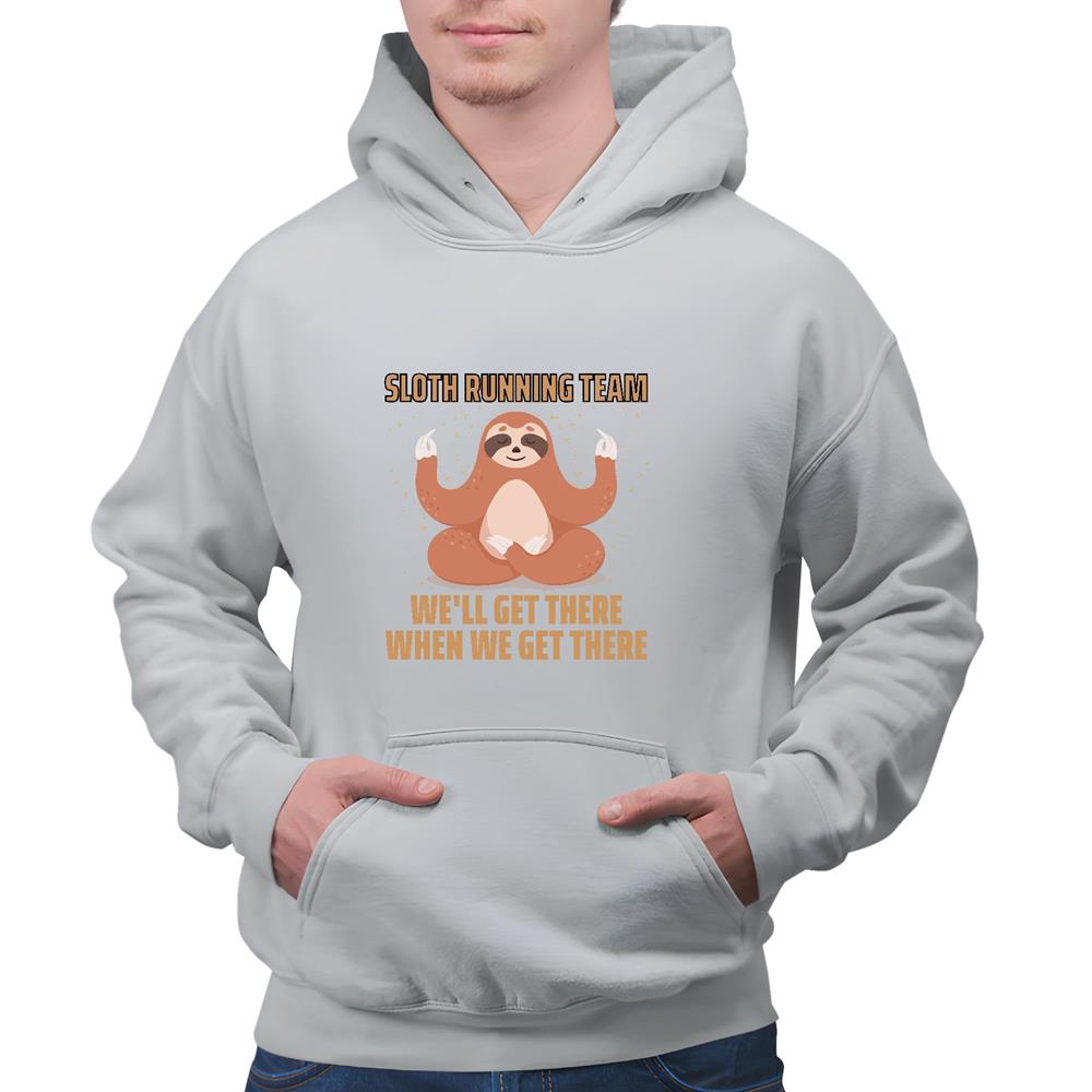 Sloth Lover Gift Funny Sloths Well Get There When We Get There Saying Humor Sarcasm Gray and Muticolor Unisex Hoodie