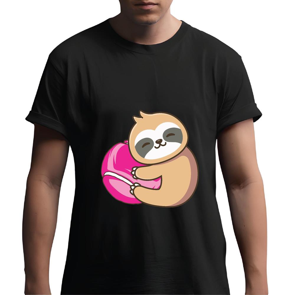 Sloth Hug Pink Tennis Ball Gift for Girls Sports Lovers Cute Men Women Black Multicolor T shirt