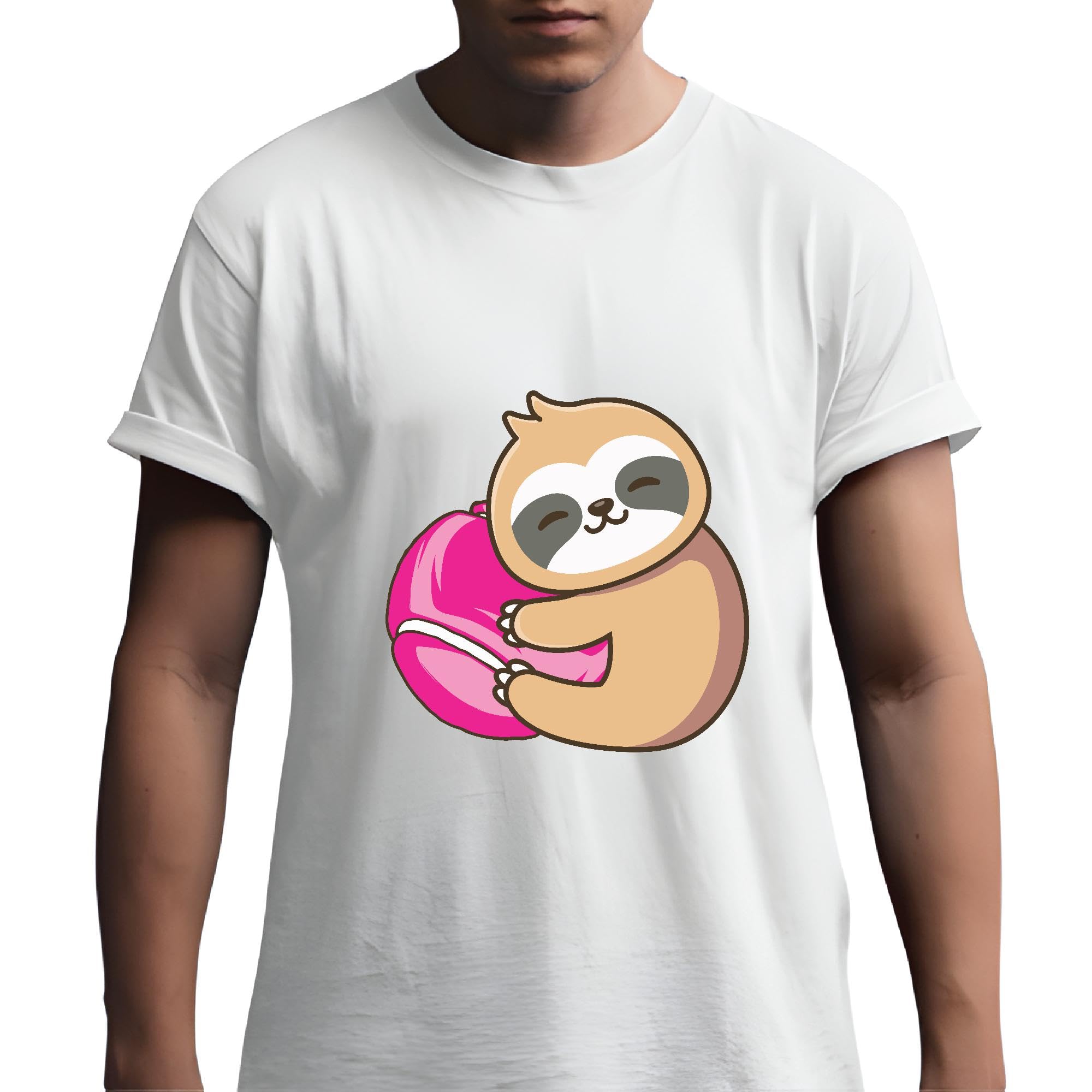Sloth Hug Pink Tennis Ball Gift for Girls Sports Lovers Cute Men Women White Gray Multicolor T shirt