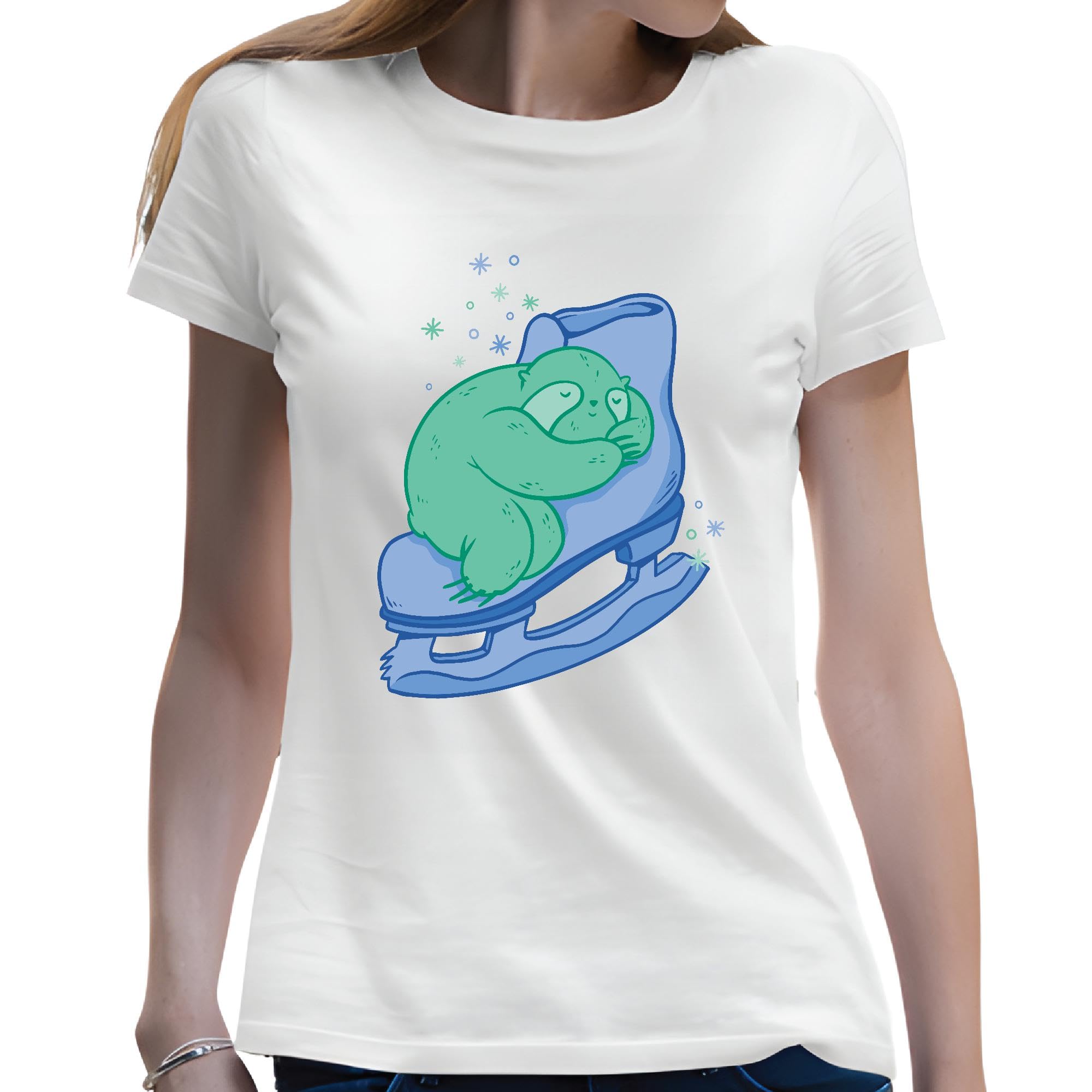 Sloth Ice Skating Gift for Kids Cute Sloth On Ice Skate Design Men Women White Gray Multicolor T shirt