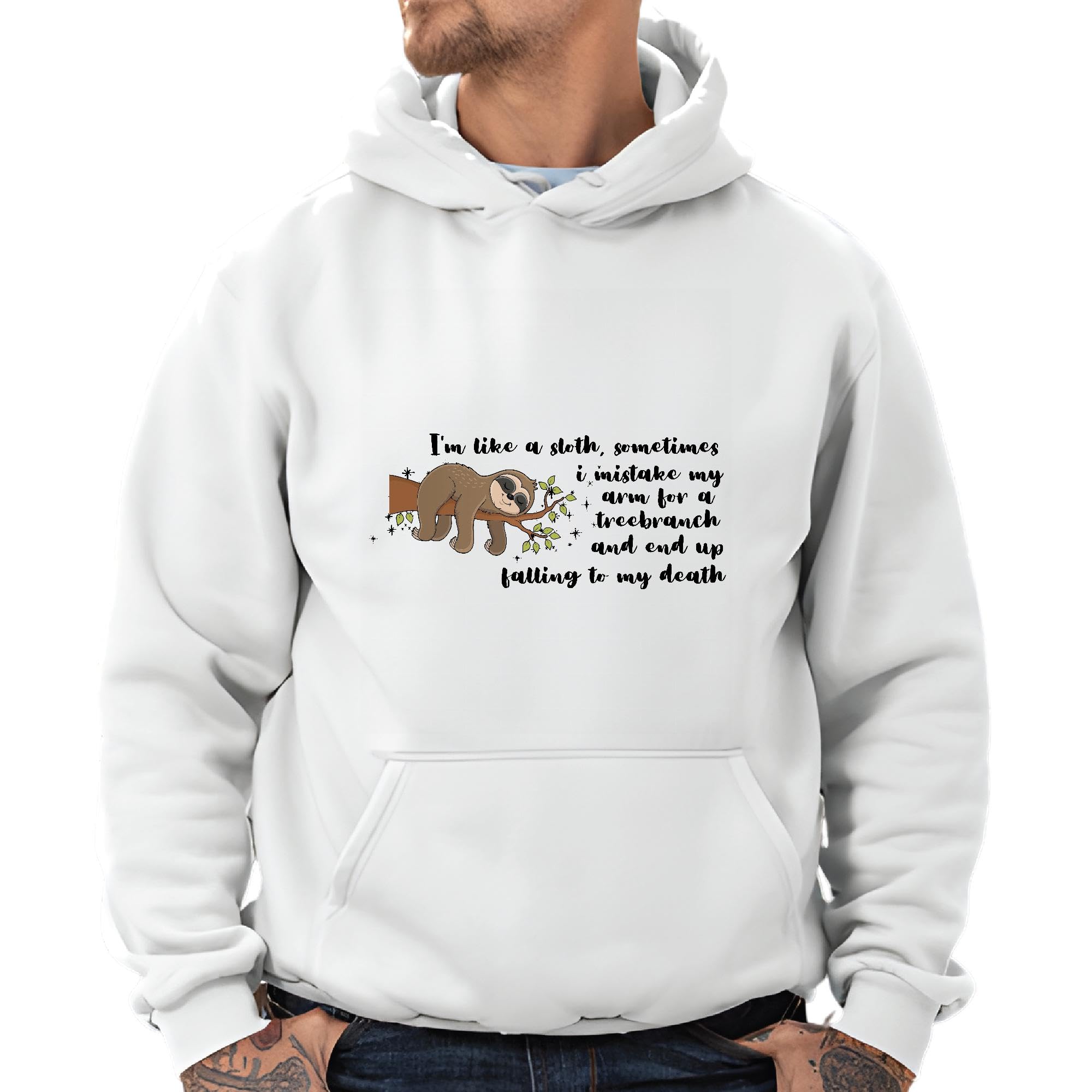 Sloth Lovers Gift Humorous Saying I amistake My Arm for a Tree Branch Gray and Muticolor Unisex Hoodie