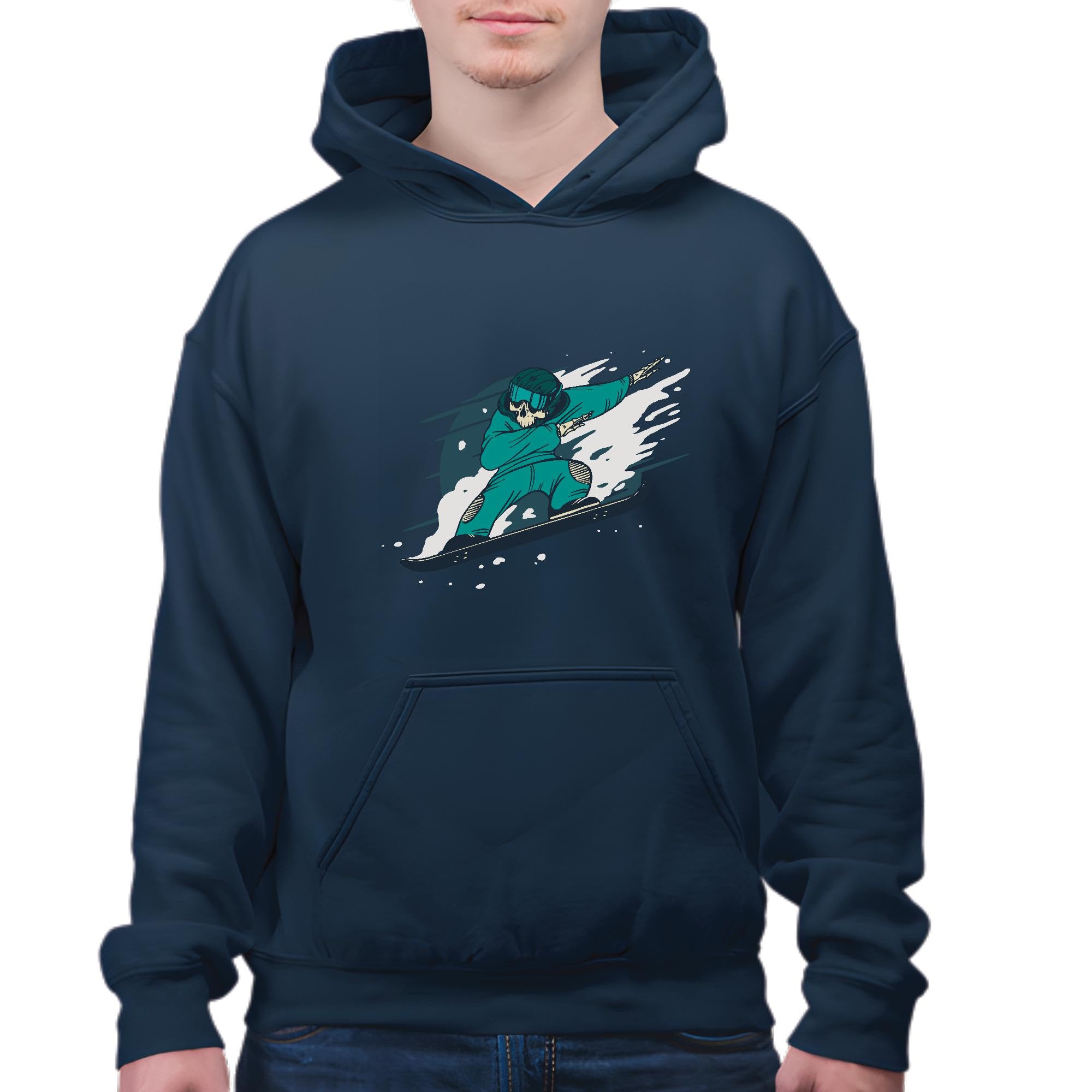 Snowboarding Gift for Skeleton Dabbing Fans for Winter Sports Lovers Navy and Muticolor Unisex Hoodie