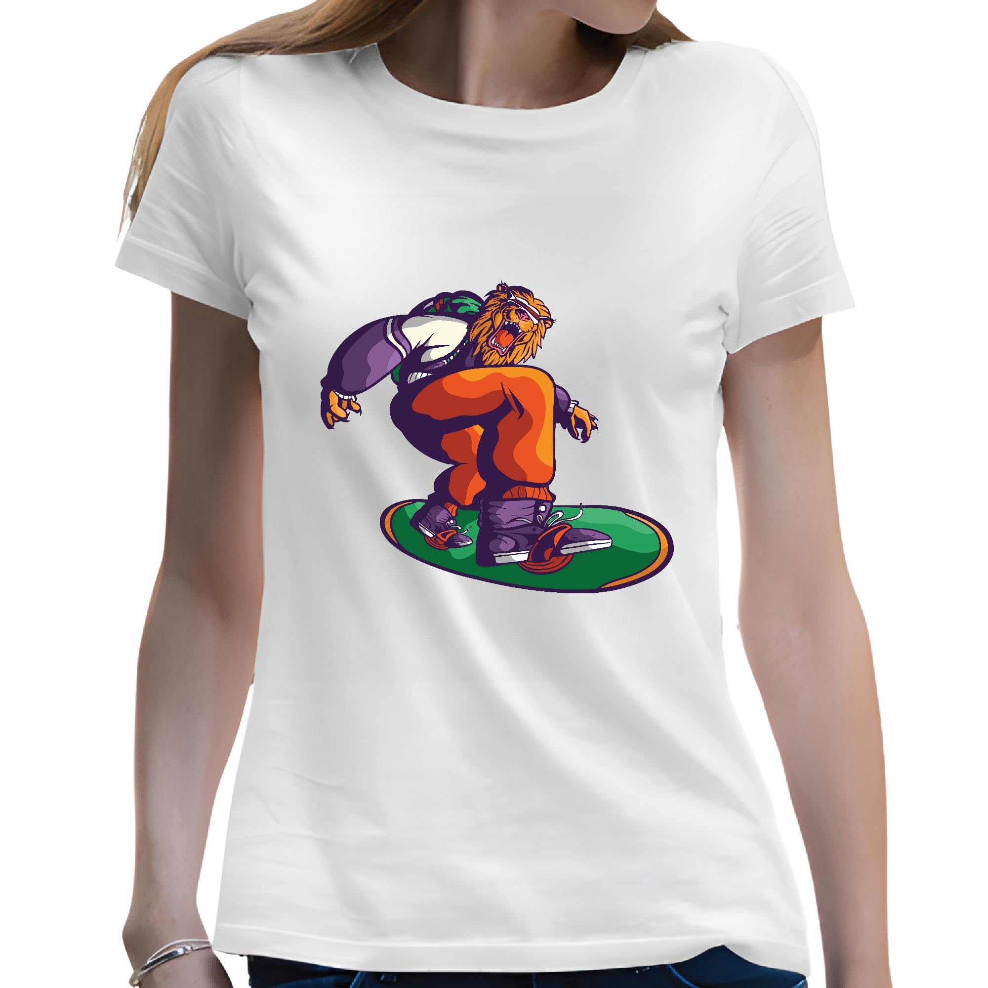 Snowboarding Gift for Lion Lovers for All Ages Men Women White Gray Multicolor T shirt