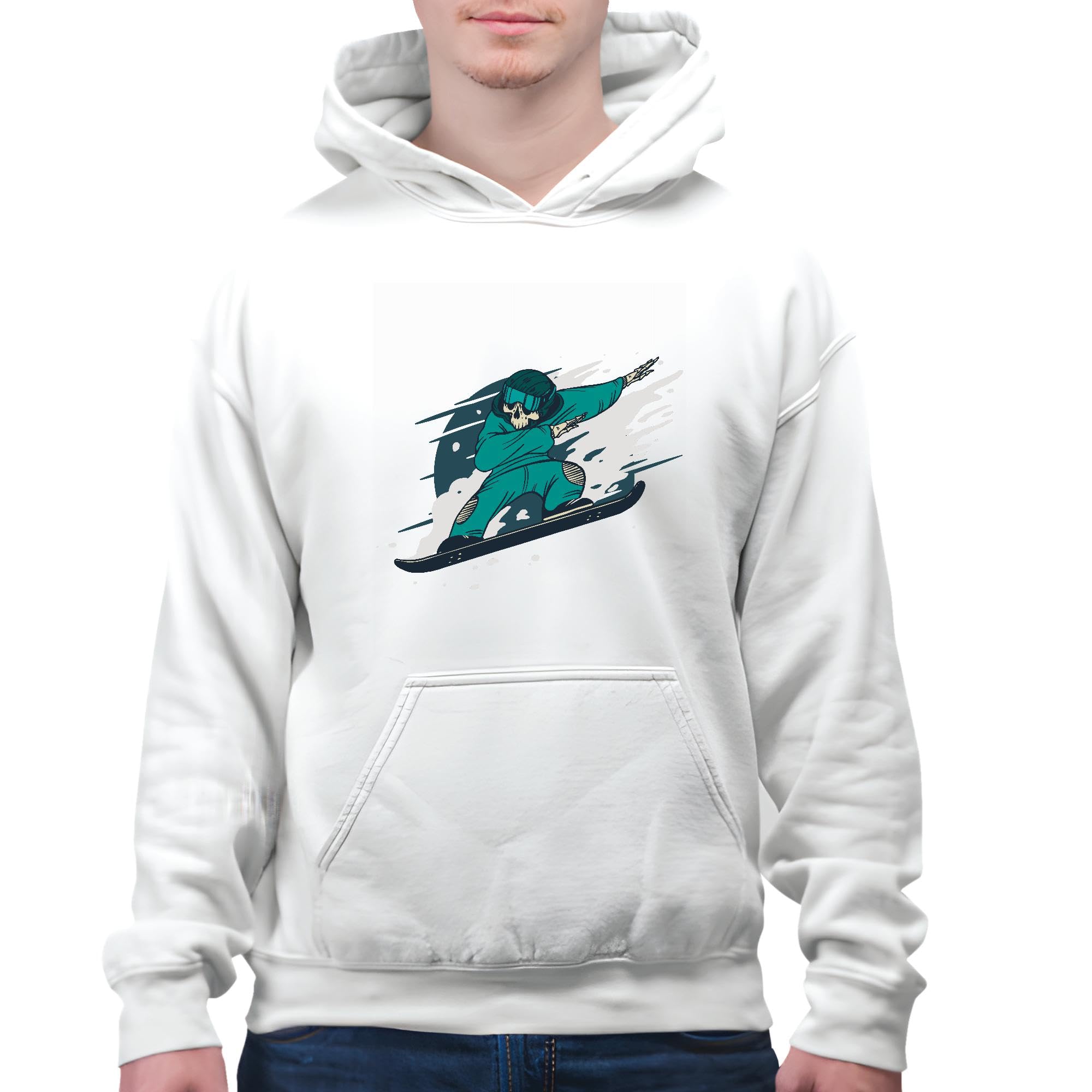 Snowboarding Gift for Skeleton Dabbing Fans for Winter Sports Lovers White and Muticolor Unisex Hoodie