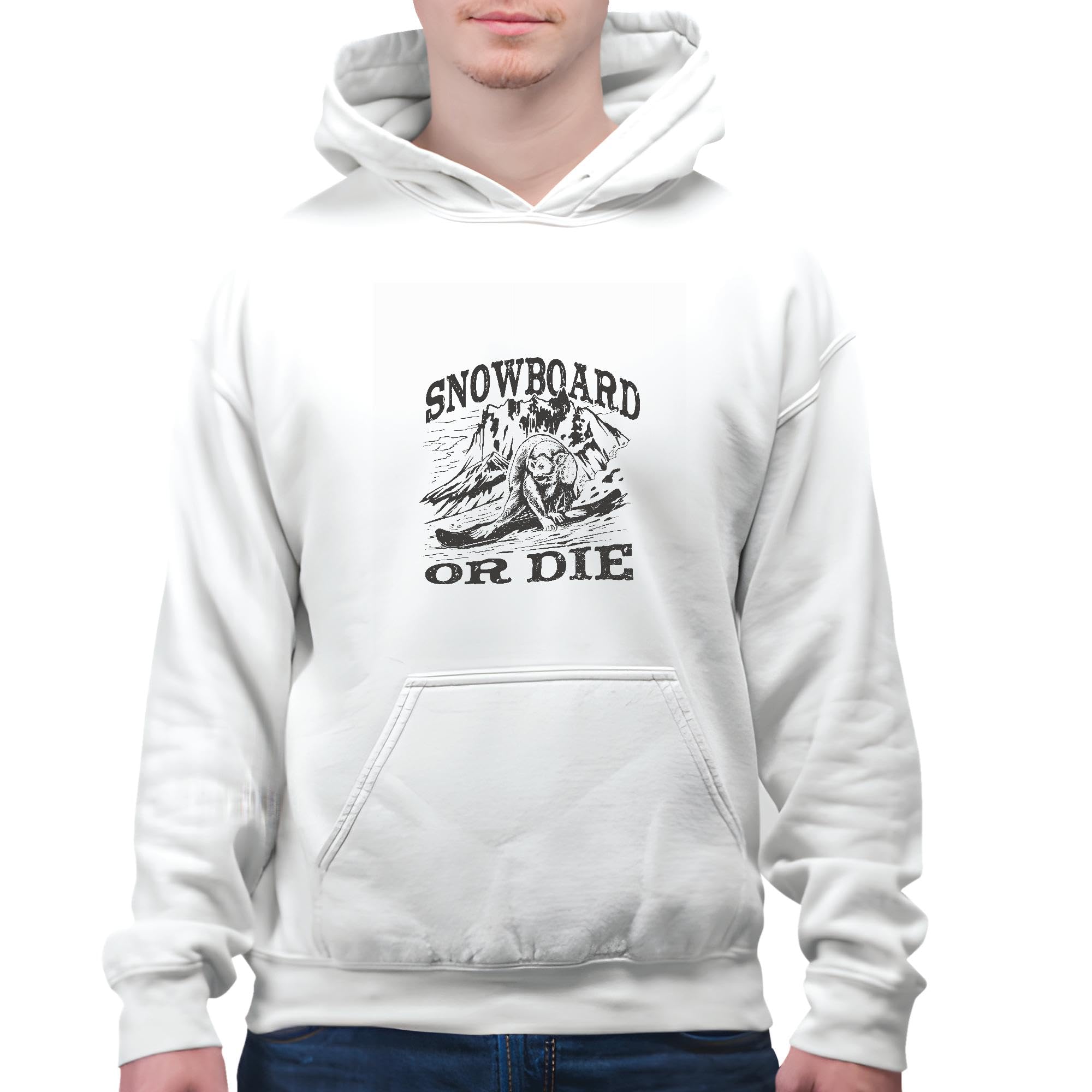 Snowboarding Gift for Adventurers Monkey Snowboard Quote White and Muticolor Unisex Hoodie