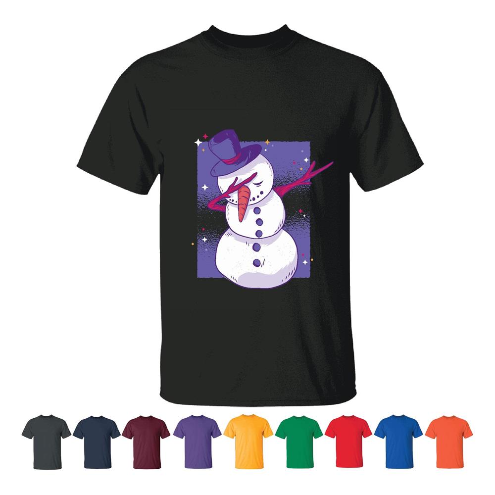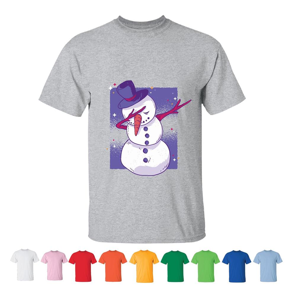 Snowman Dab Dance Move Gift for Kids Starry Rectangle Background Design Men Women White Gray T shirt