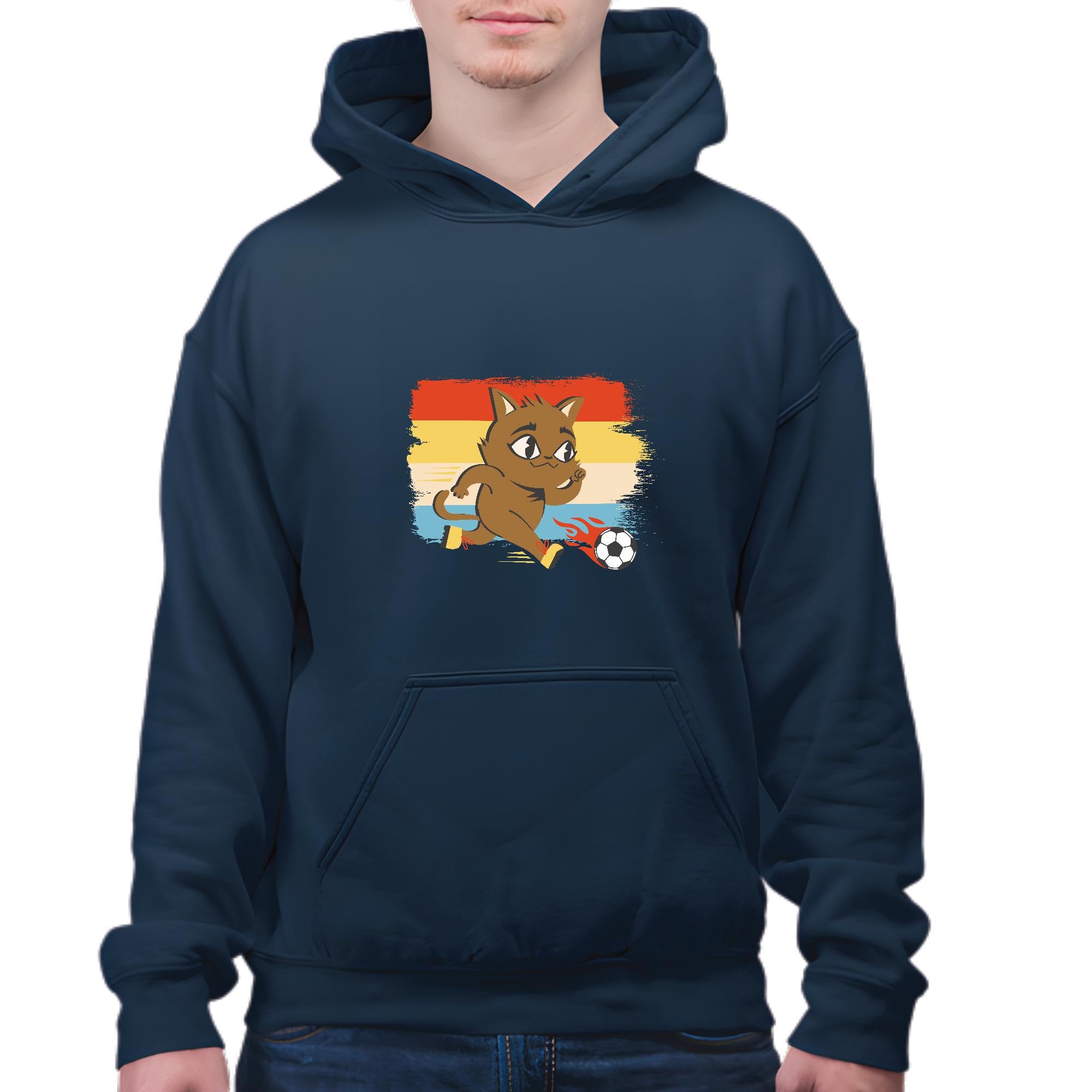 Soccer Cat Lover Gifts Ideas Ideal Present for Cat Lovers Fans and Supporters Navy and Muticolor Unisex Hoodie