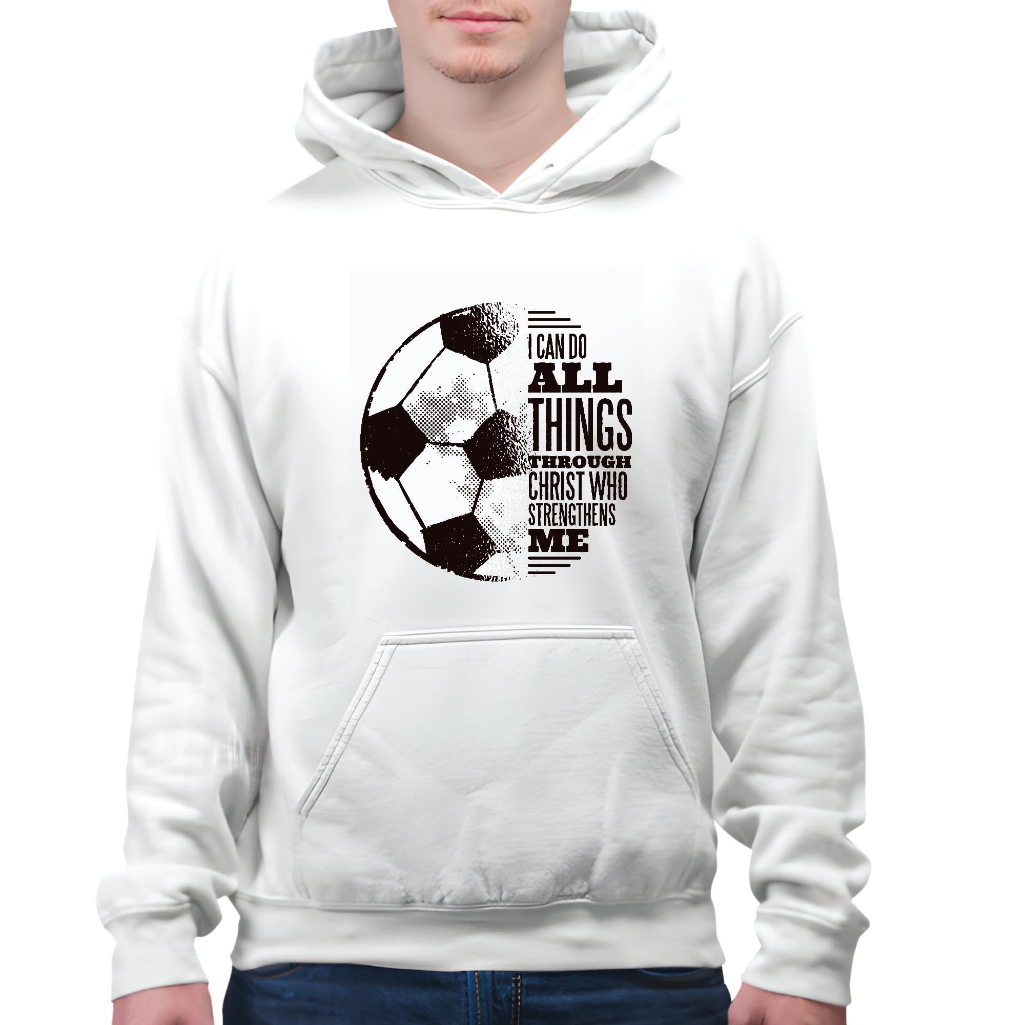 Soccer Christ Quote Gift for Soccer Fans and Players White and Muticolor Unisex Hoodie