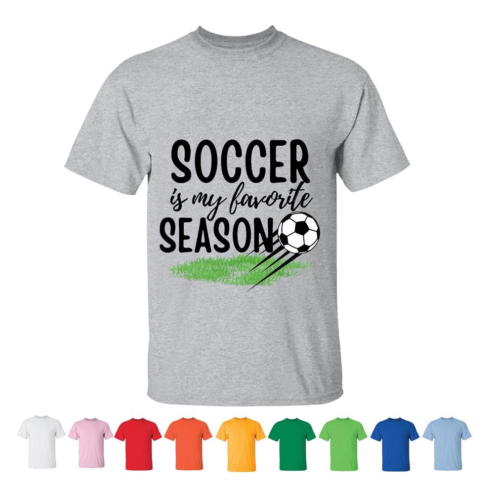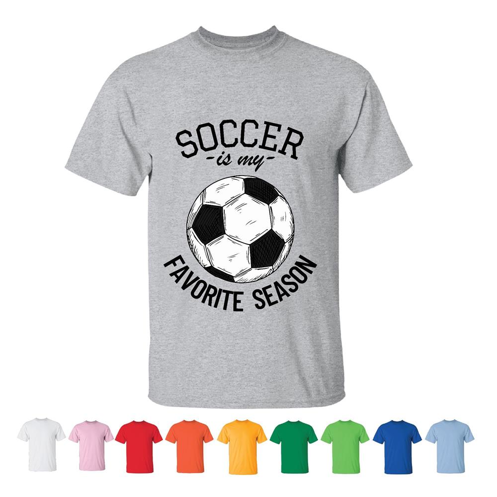 Soccer Is My Favorite SeasonSoccer Cheer Mom T Shirt for Soccer Fans and Moms Men Women White Gray T shirt