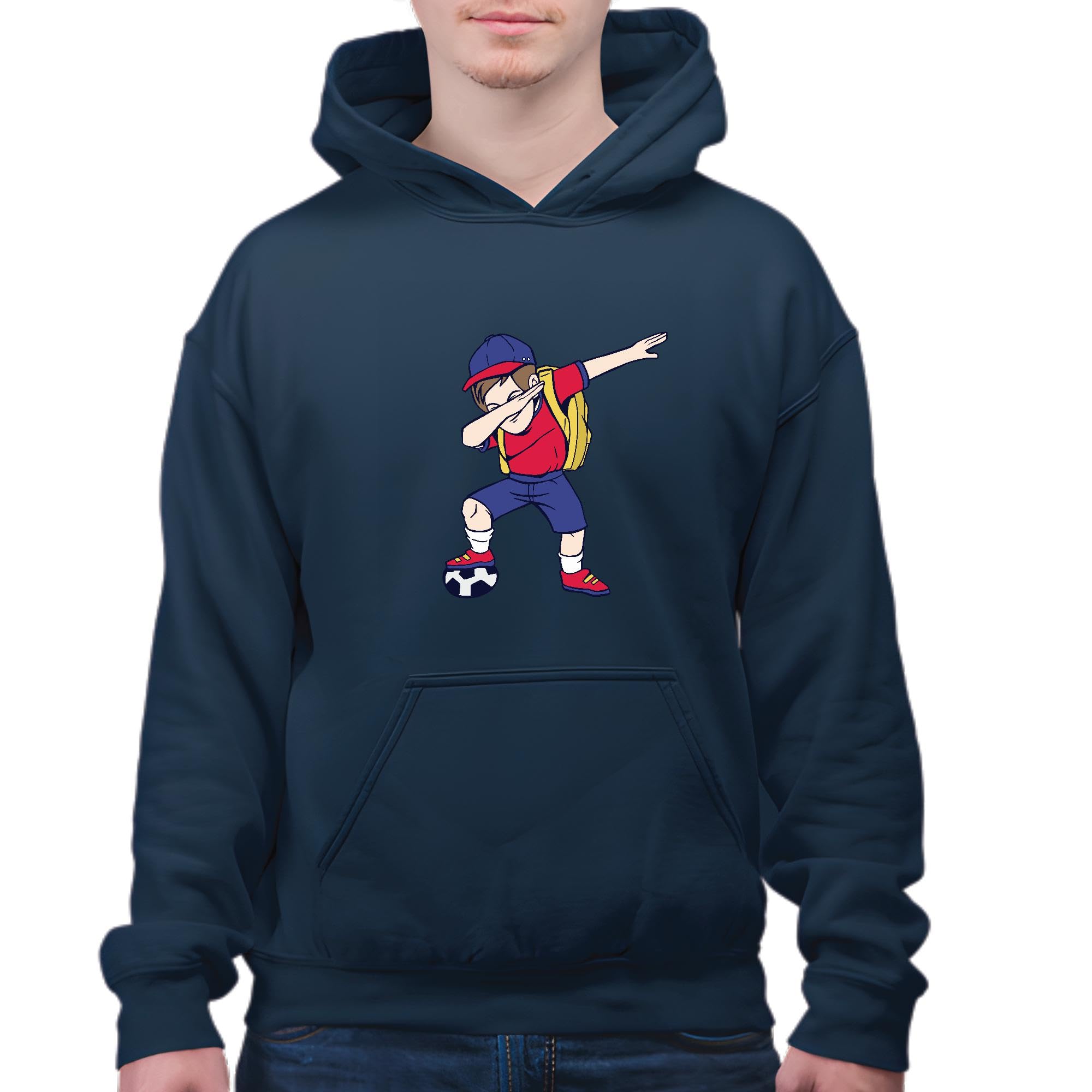 Soccer Kid Gift Dabbing Ball Sports for Kids Gift for Soccer Fans Navy and Muticolor Unisex Hoodie