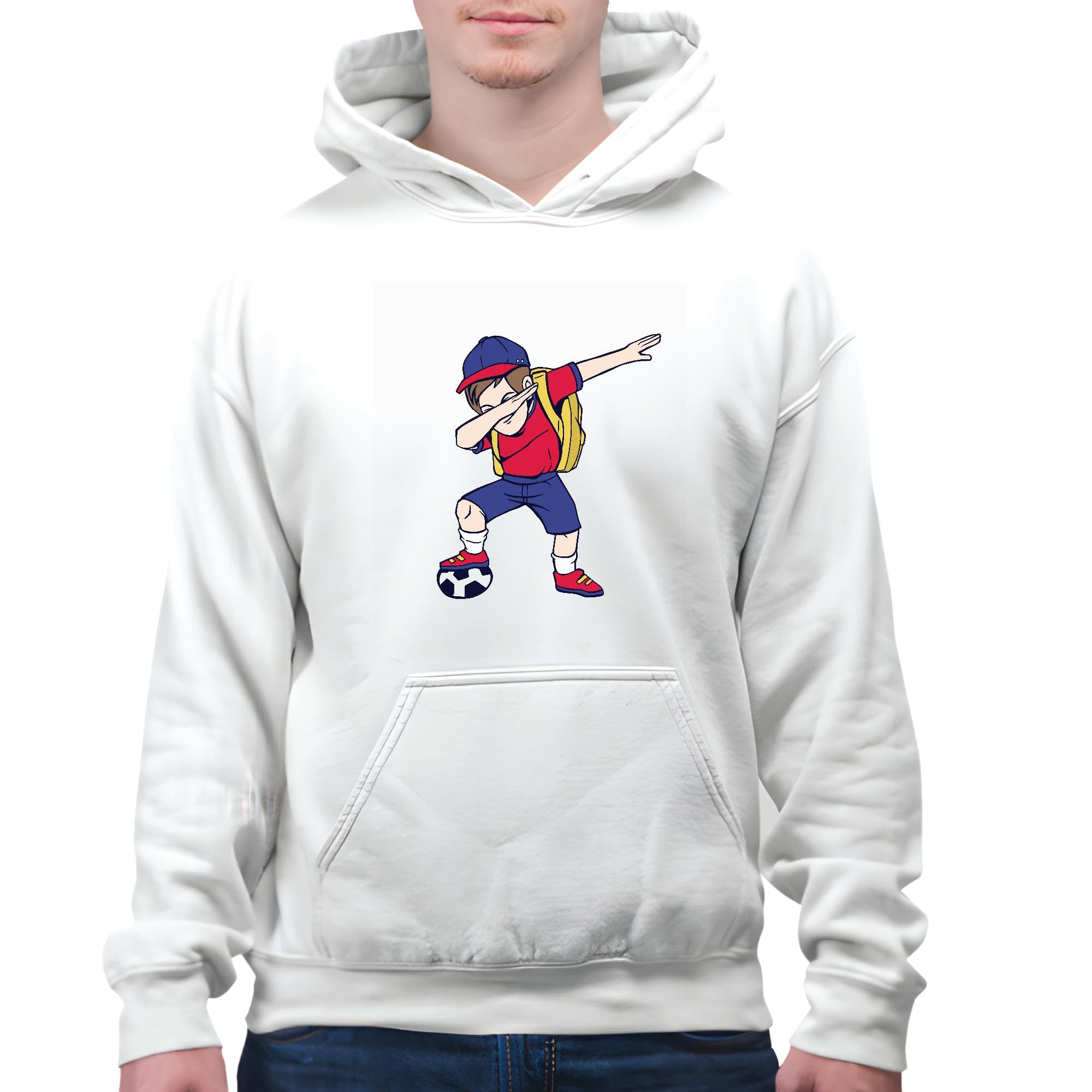 Soccer Kid Gift Dabbing Ball Sports for Kids Gift for Soccer Fans White and Muticolor Unisex Hoodie