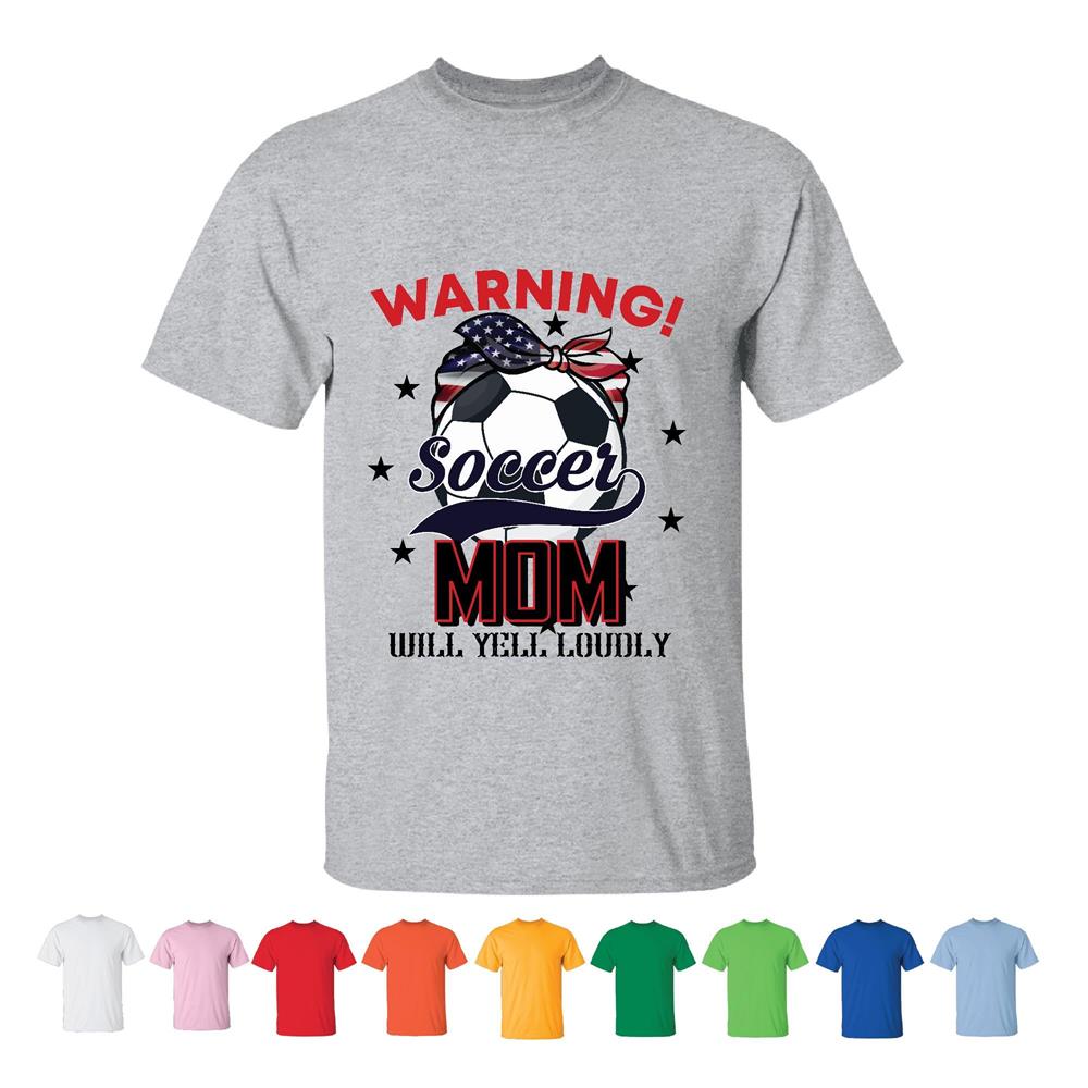 Soccer Mom warning will yell loudly for Soccer Lover Men Women White Gray T shirt
