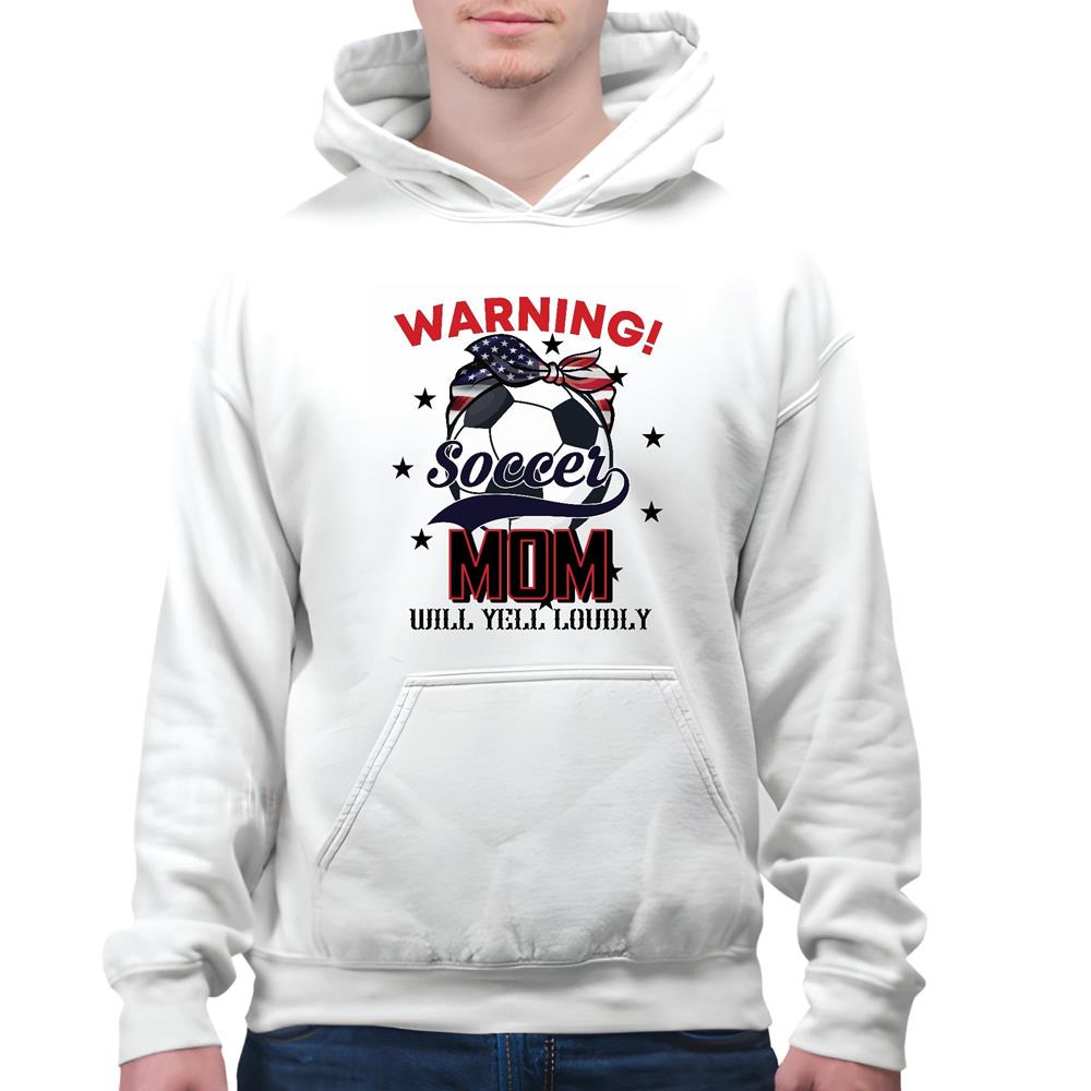 Soccer Mom warning will yell loudly for Soccer Lover White and Muticolor Unisex Hoodie