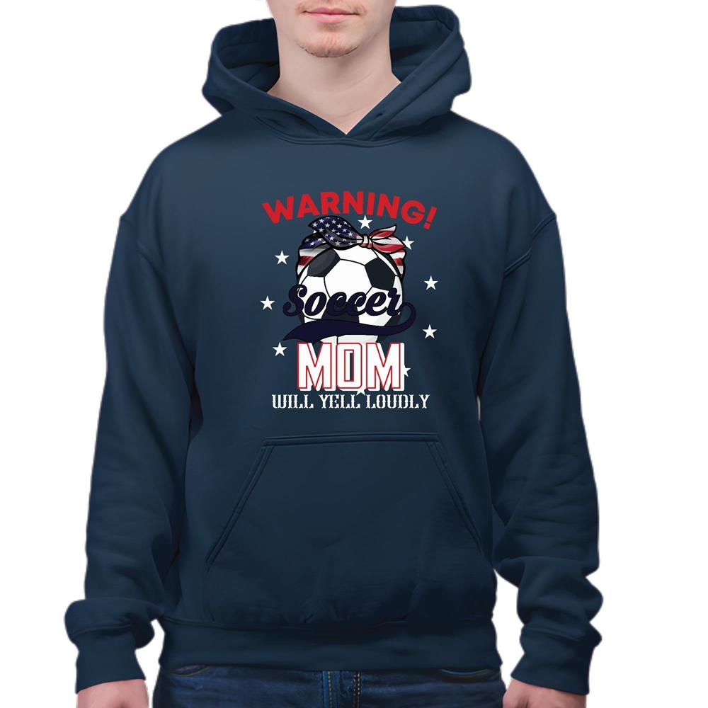 Soccer Mom warning will yell loudly for Soccer Lover Navy and Muticolor Unisex Hoodie