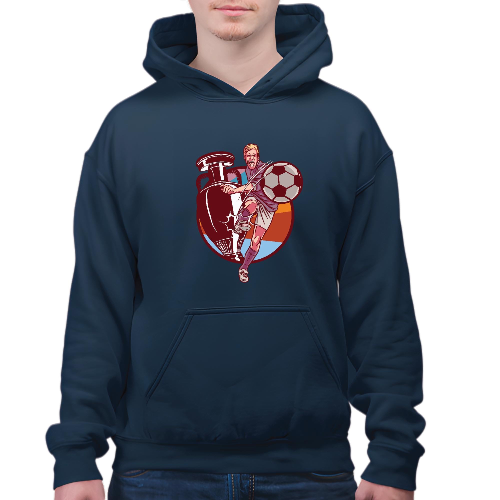 Soccer Player Gift Trophy for Soccer Sport Fans Present for Soccer Lovers Navy and Muticolor Unisex Hoodie