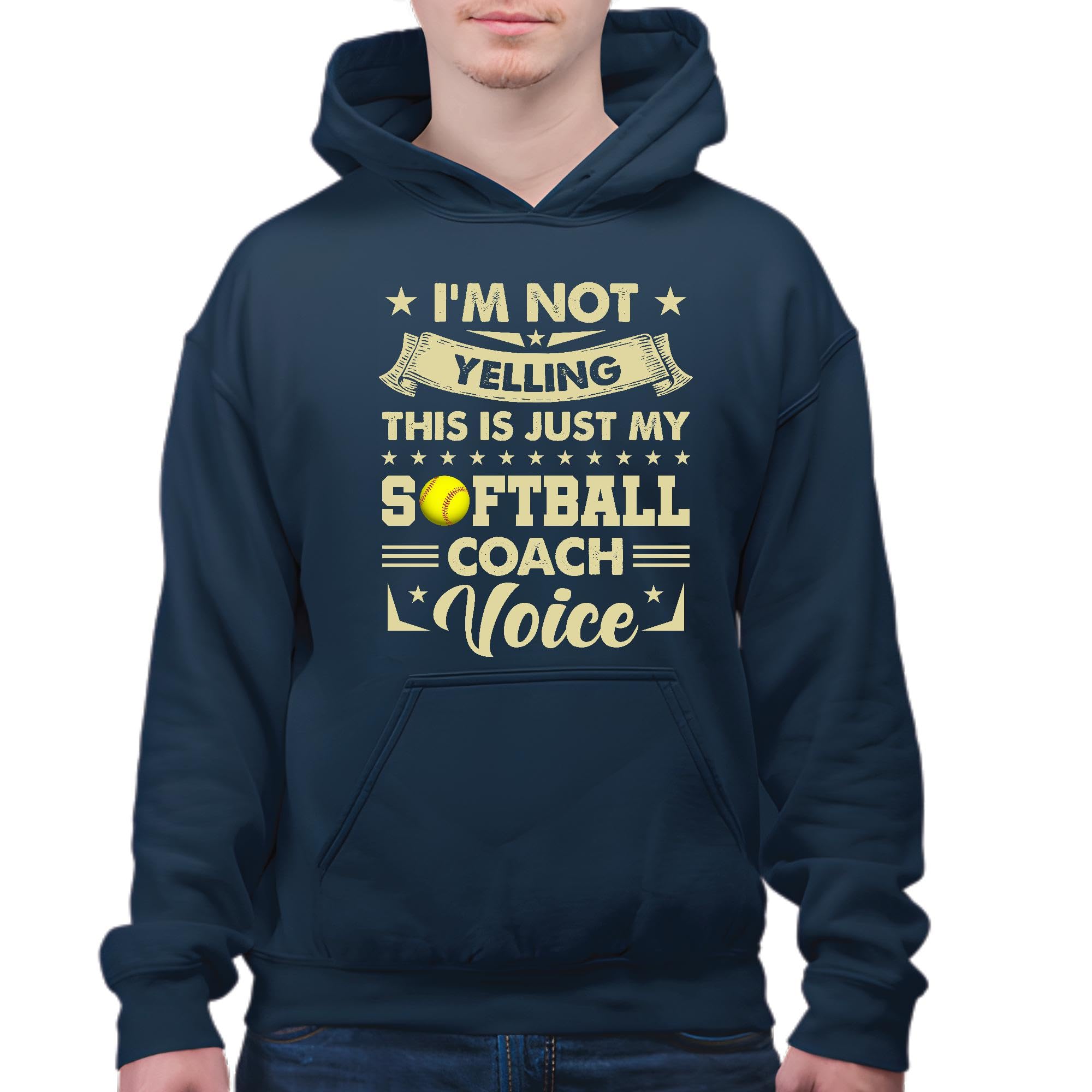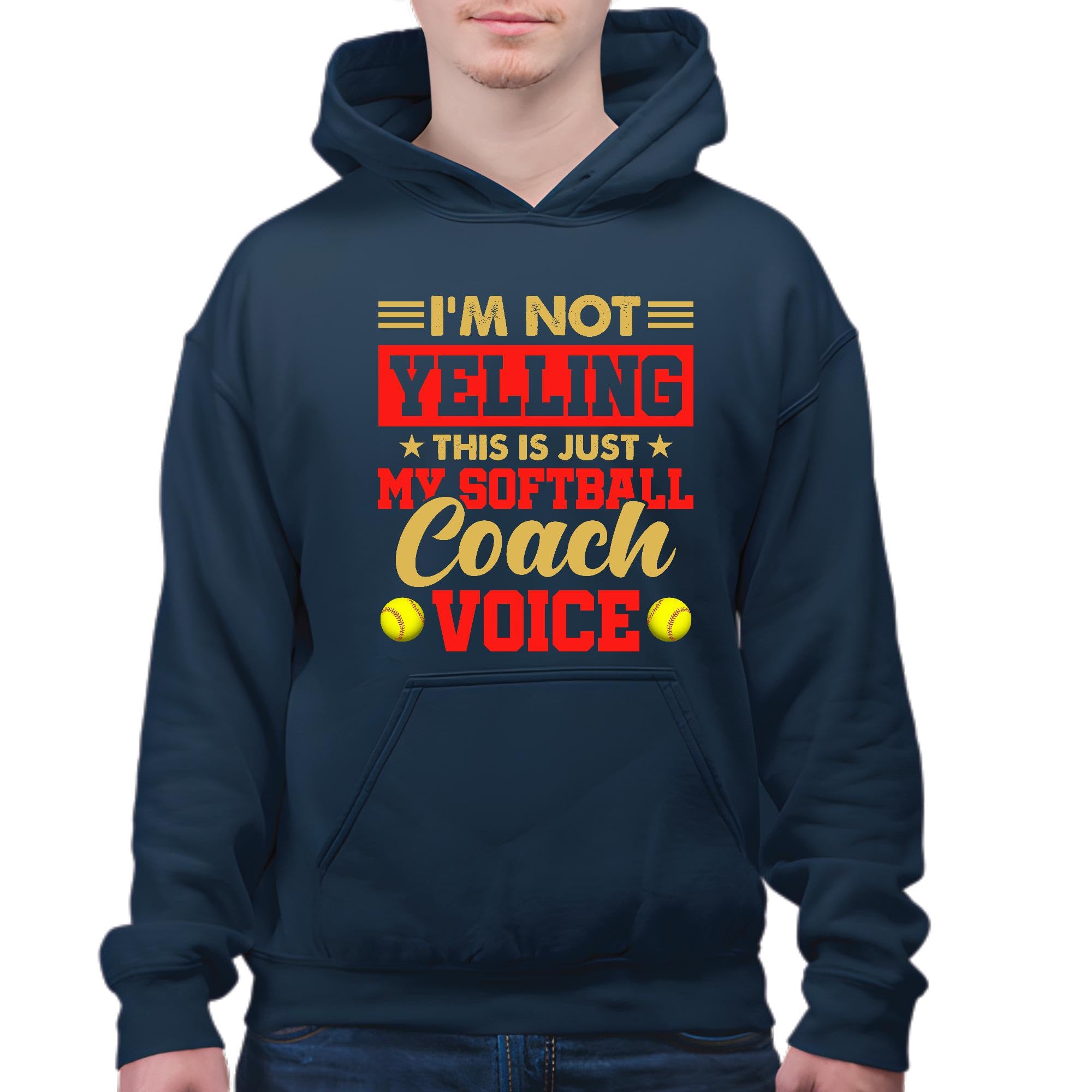 Softball Coach Voice Design Gift for Sports Fans Navy and Muticolor Unisex Hoodie