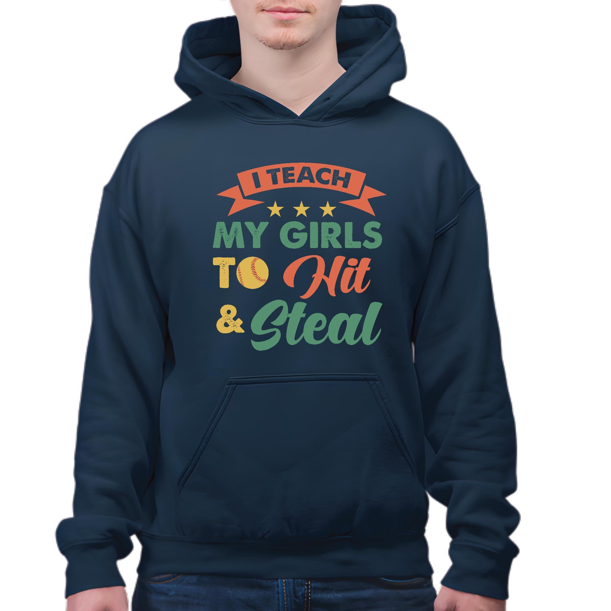 Softball Coach Gift Idea for Girls – Teach Hitting & Stealing Skills Navy and Muticolor Unisex Hoodie