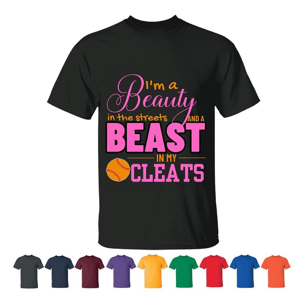 Softball Gift Idea for Girls Beast in My Cleats Beauty in the Street Men Women Black T shirt