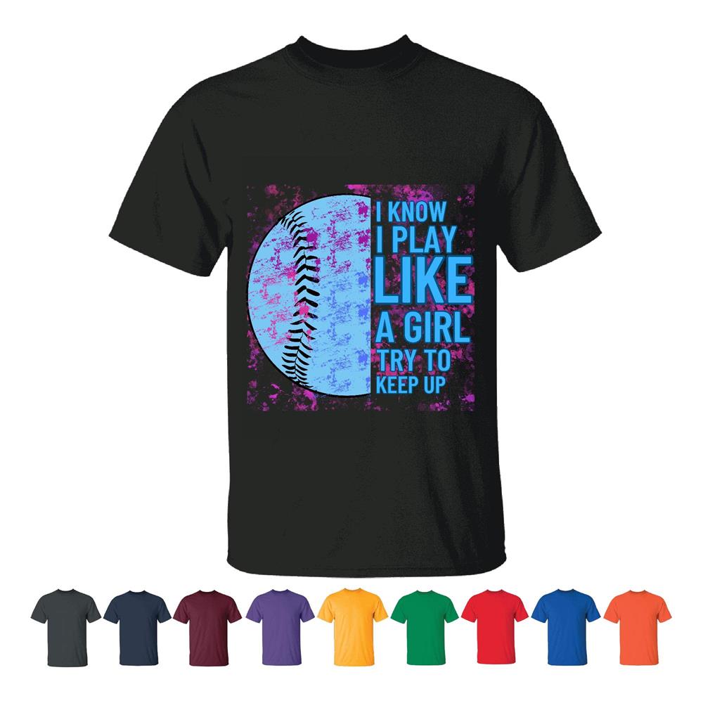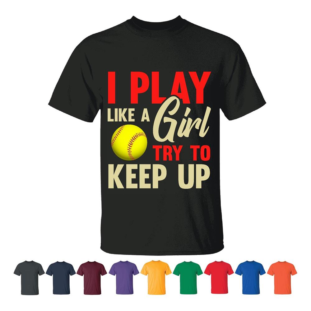 Softball Gift for Girls Who Play Like a Girl Try to Keep Up Men Women Black T shirt