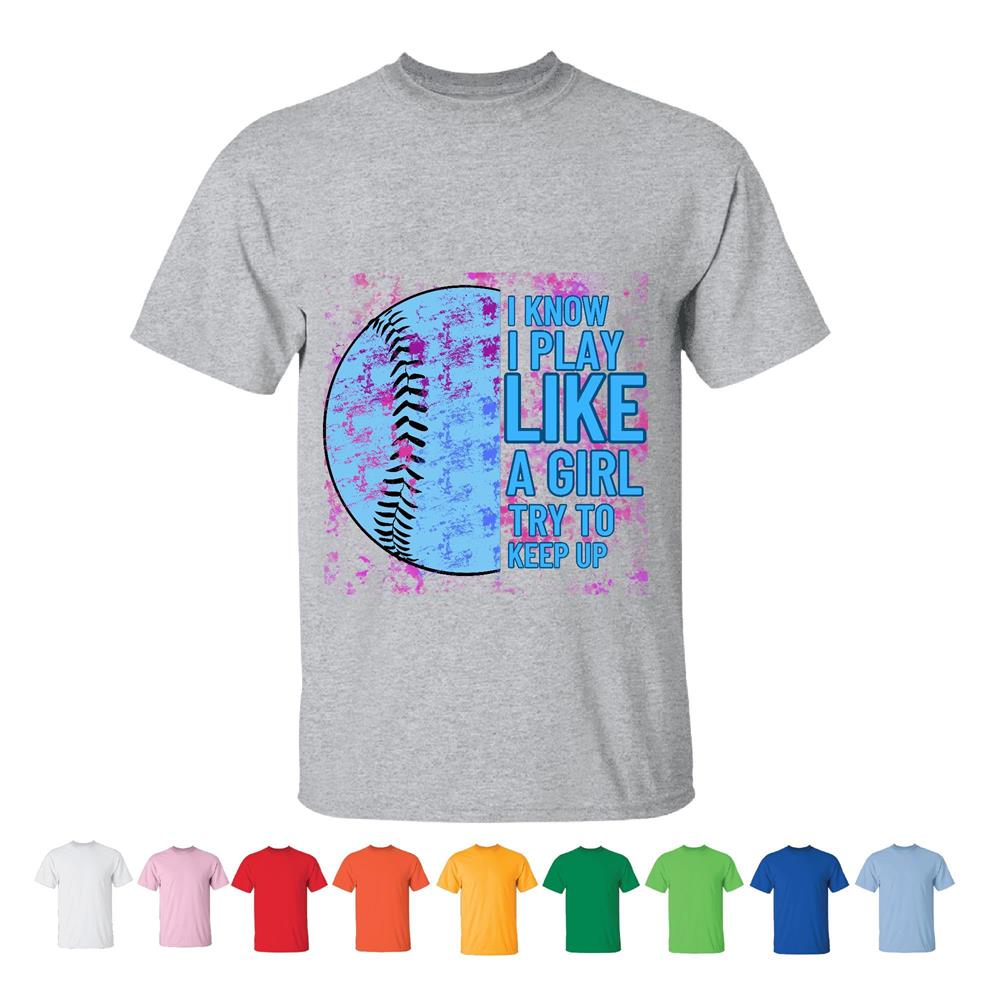 Softball Gift I Play Like A Girl Women Funny Baseball Player Men Women White Gray T shirt