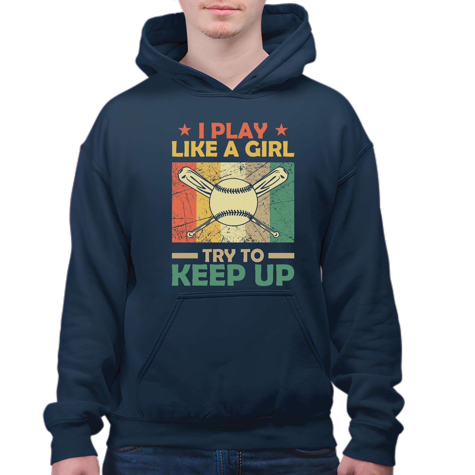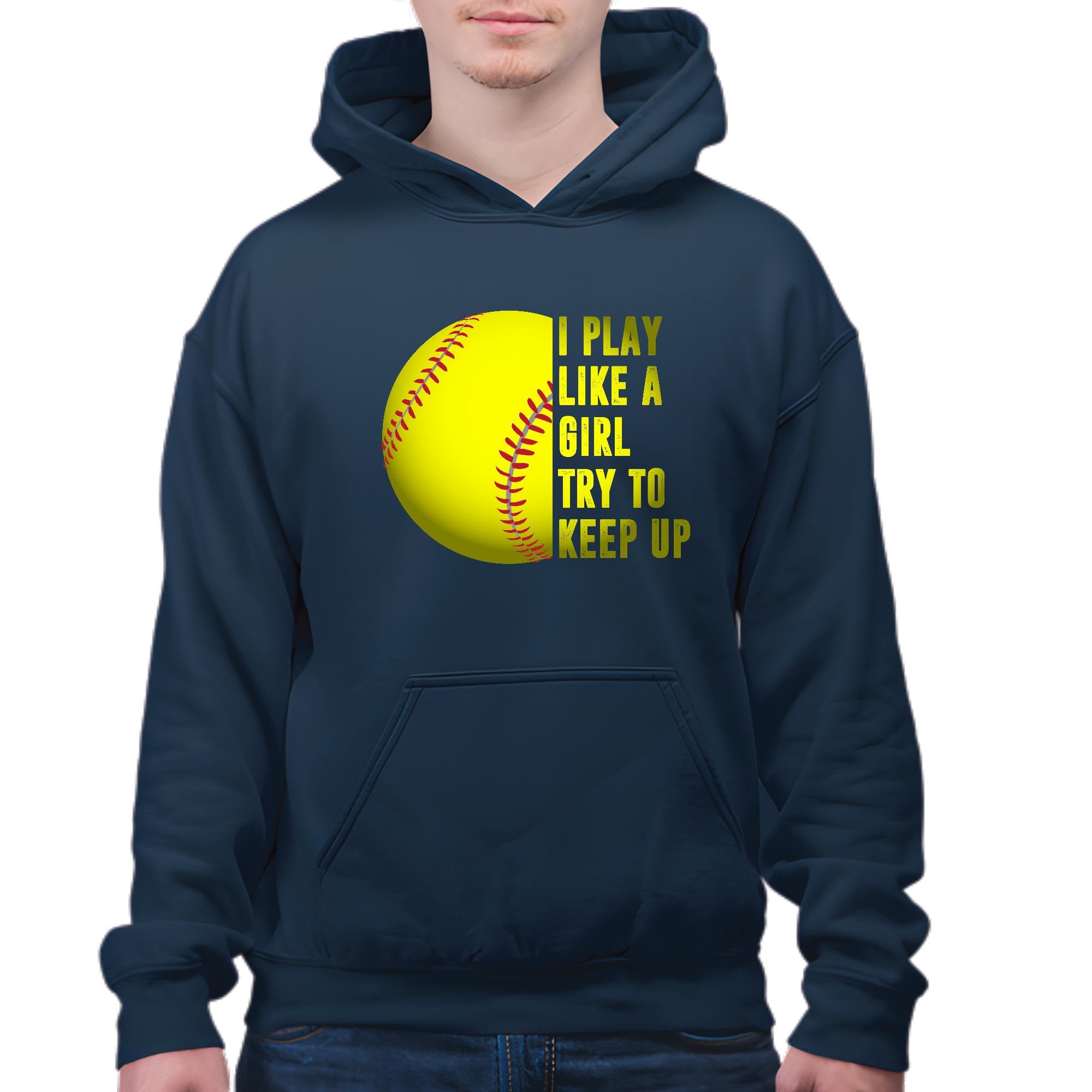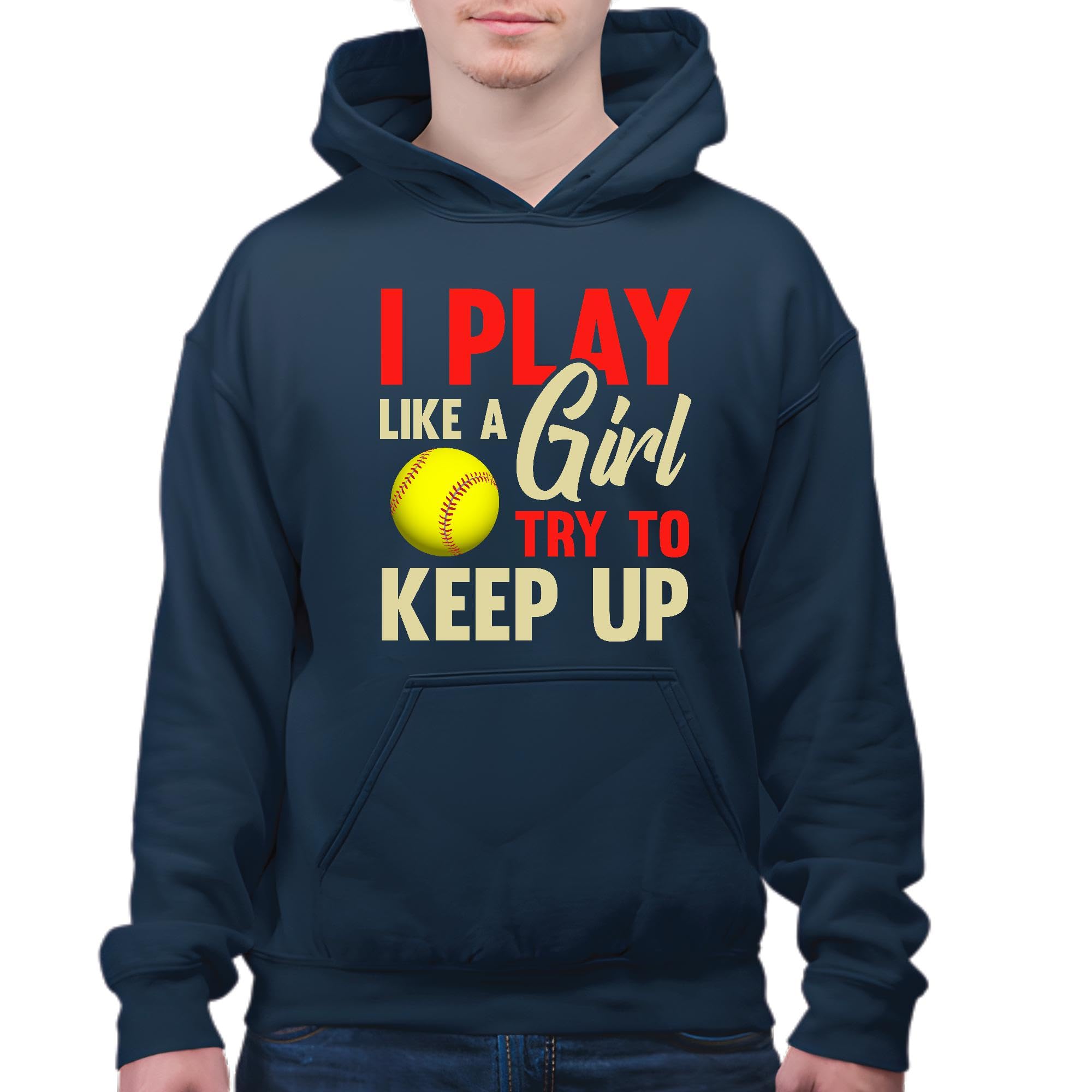 Softball Gift for Girls Who Play Like a Girl Try to Keep Up Navy and Muticolor Unisex Hoodie