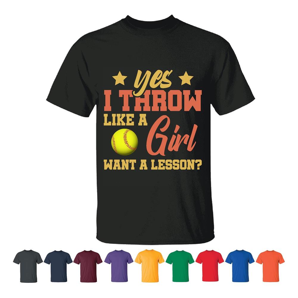 Softball Lover Gift Idea for I Throw Like a Girl Lesson Men Women Black T shirt