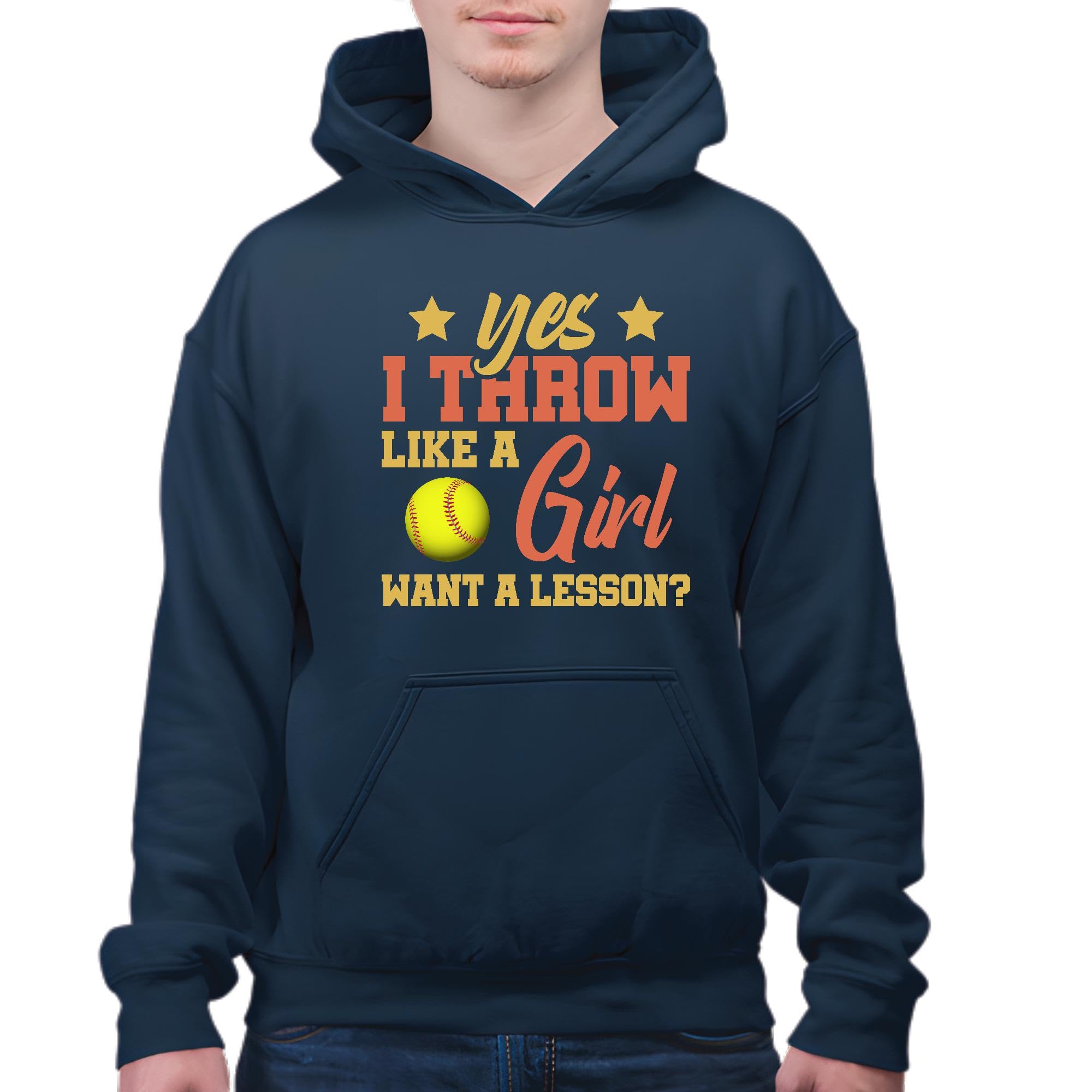 Softball Lover Gift Idea for I Throw Like a Girl Lesson Navy and Muticolor Unisex Hoodie