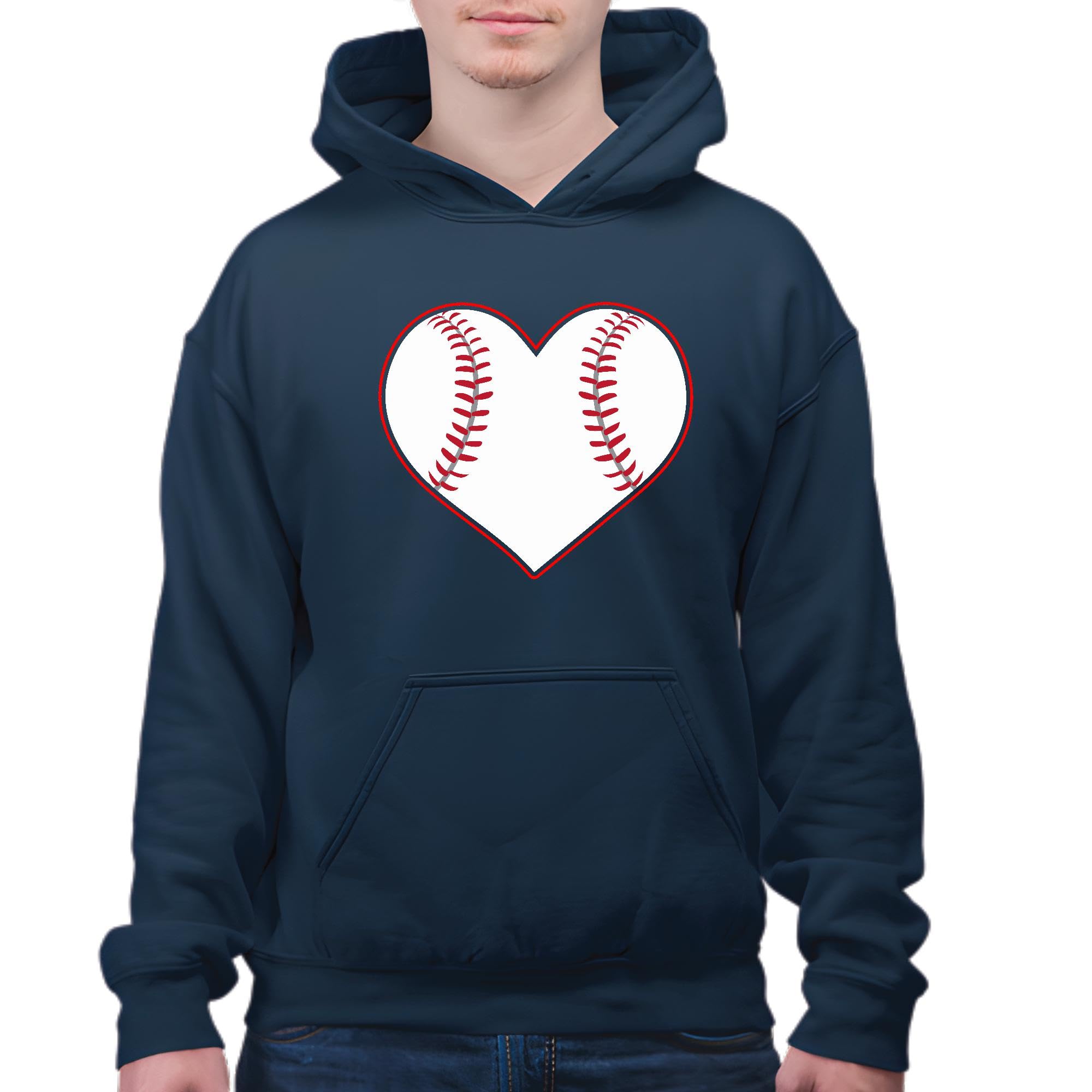 Softball Mom Dad Gift Idea Baseball Heart Team Navy and Muticolor Unisex Hoodie