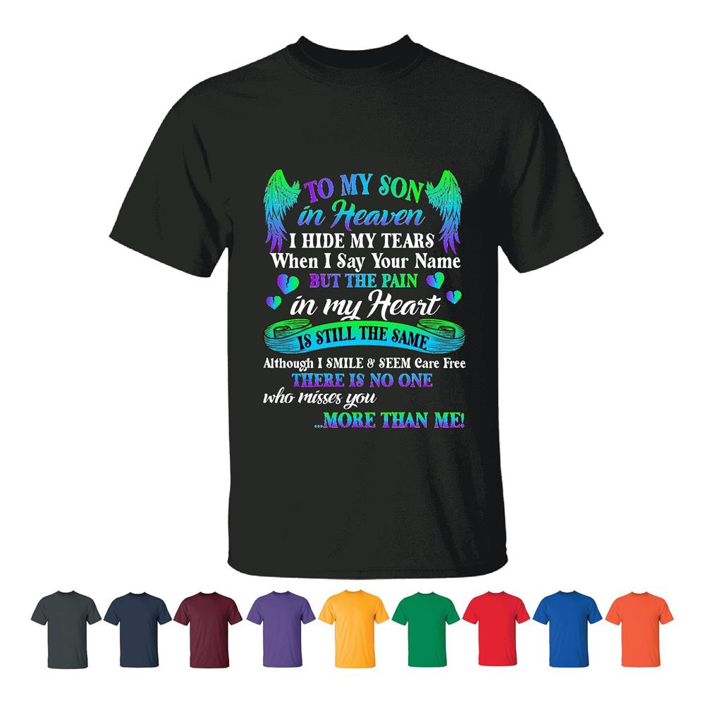 Son In Heaven Memorial Gift Ideas for Grieving Moms Men Women Black T shirt