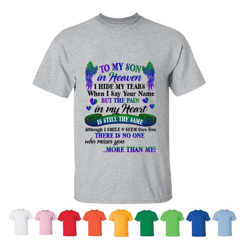 Son In Heaven Memorial Gift Ideas for Grieving Moms Men Women White Gray T shirt
