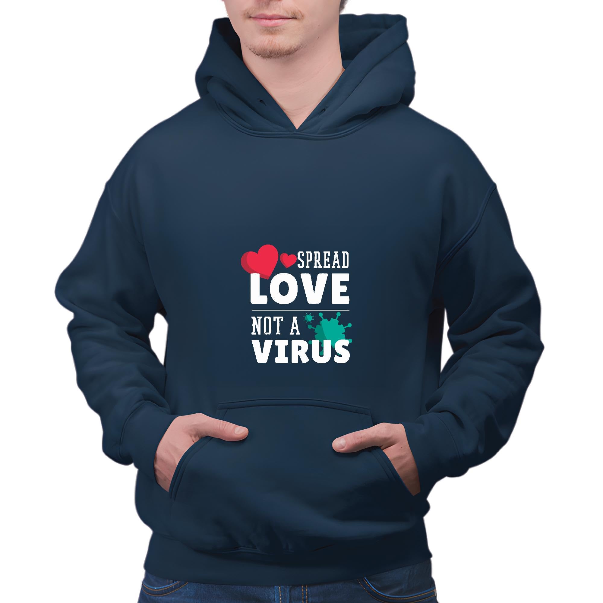 Spread Love Not Virus Quote Gift for Friends and Family Inspirational Quotes Navy and Muticolor Unisex Hoodie
