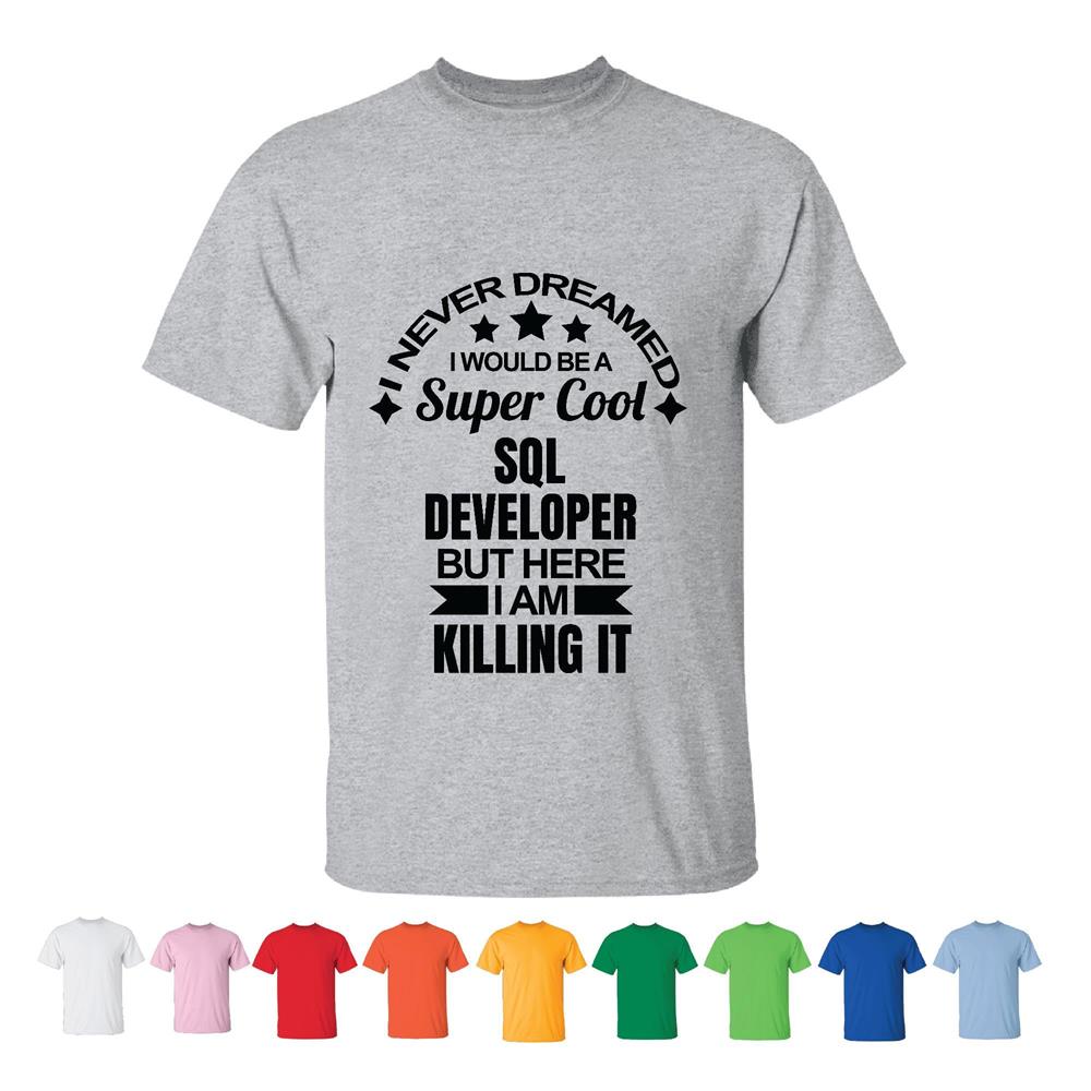 SQL Developer Gift Perfect for Programmers Who Never Imagined Being Here Men Women White Gray T shirt