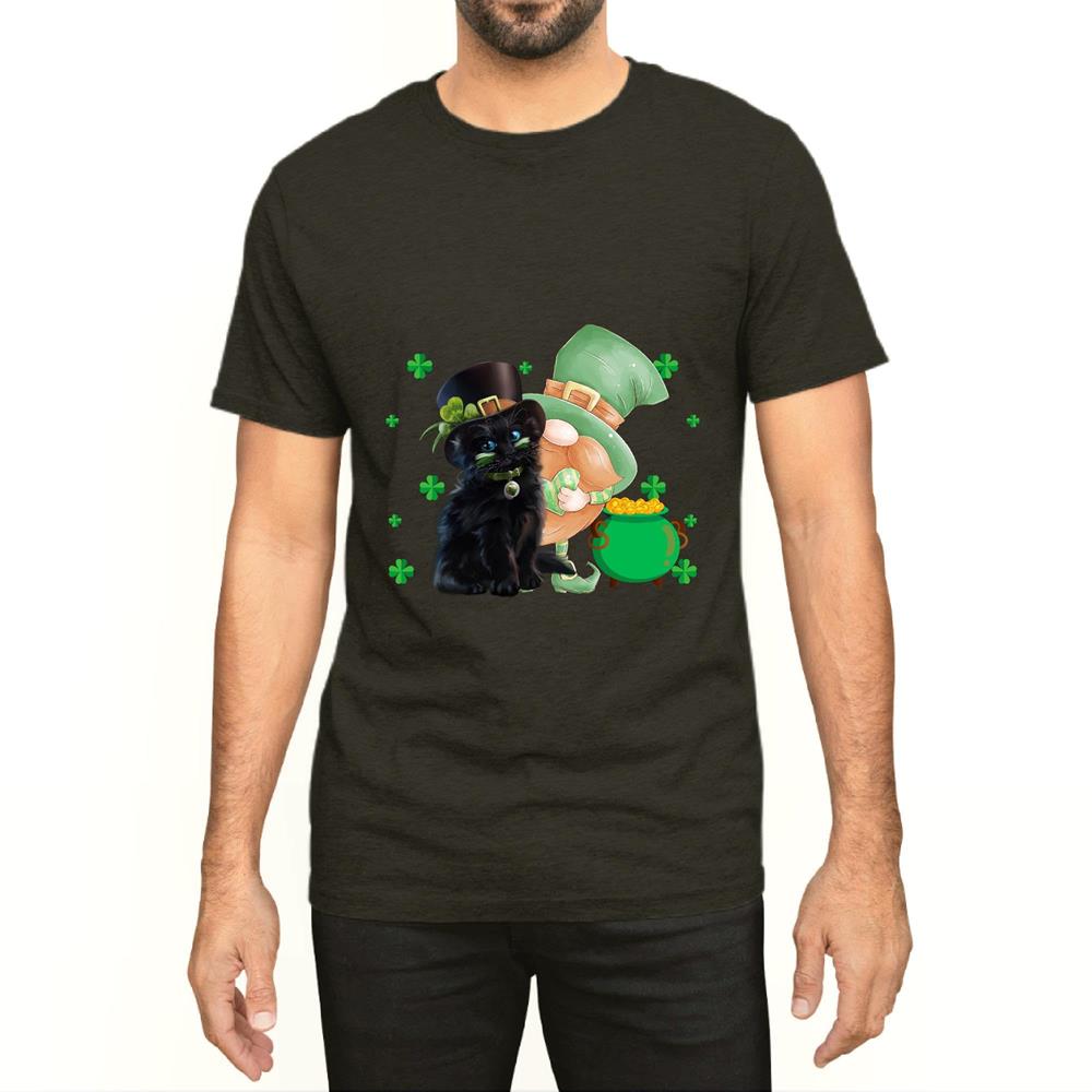 St Patricks Day Gift for Cat LoversGnomes Hugging Shamrock Clover Men Women Black Multicolor T shirt