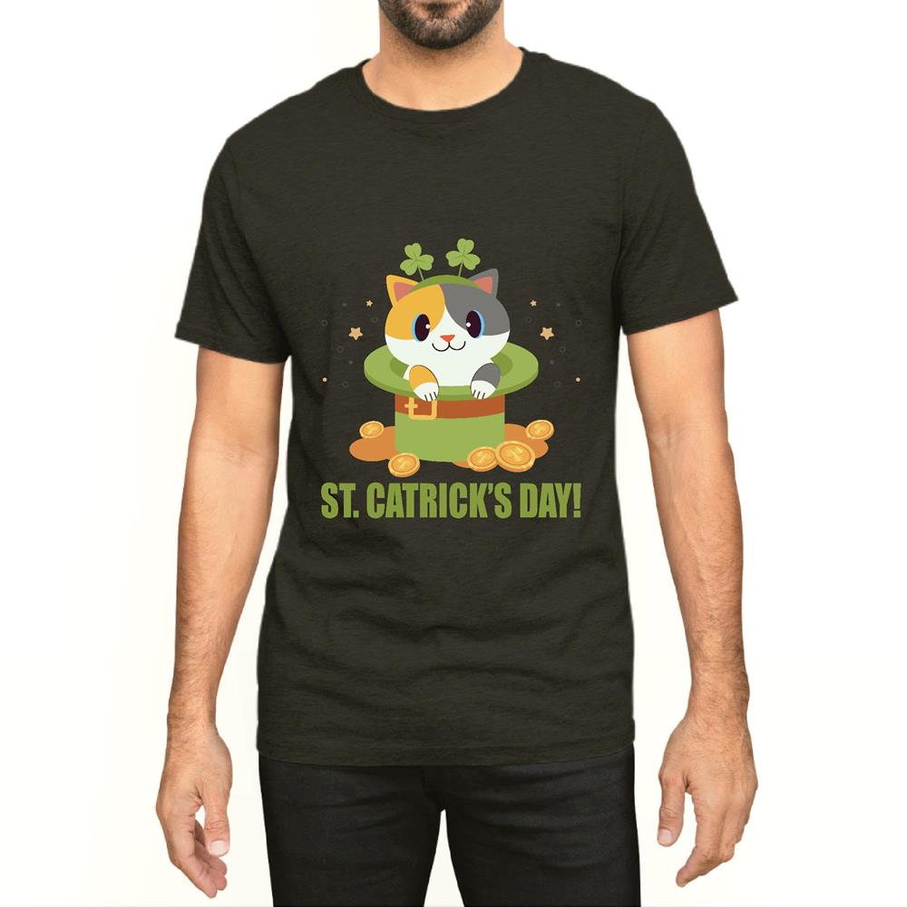 St Patricks Day Gift for Cat Lovers Cute Graphic Men Women Black Multicolor T shirt