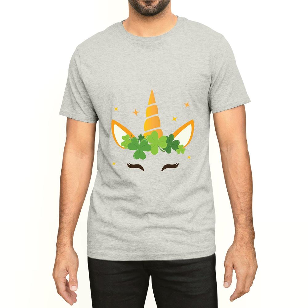St Patricks Day Gift for Girls Kids Cute Unicorn Face Men Women White Gray Multicolor T shirt