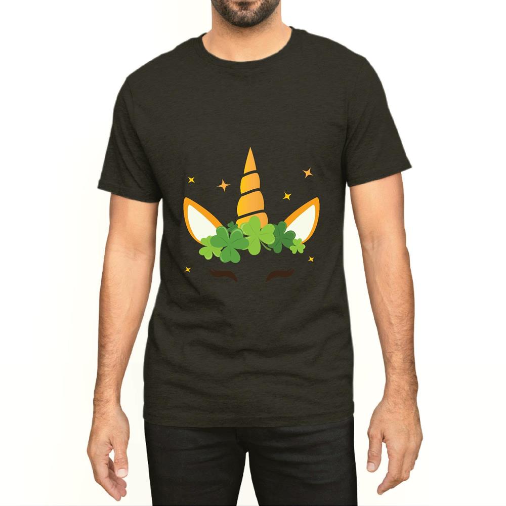 St Patricks Day Gift for Girls Kids Cute Unicorn Face Men Women Black Multicolor T shirt