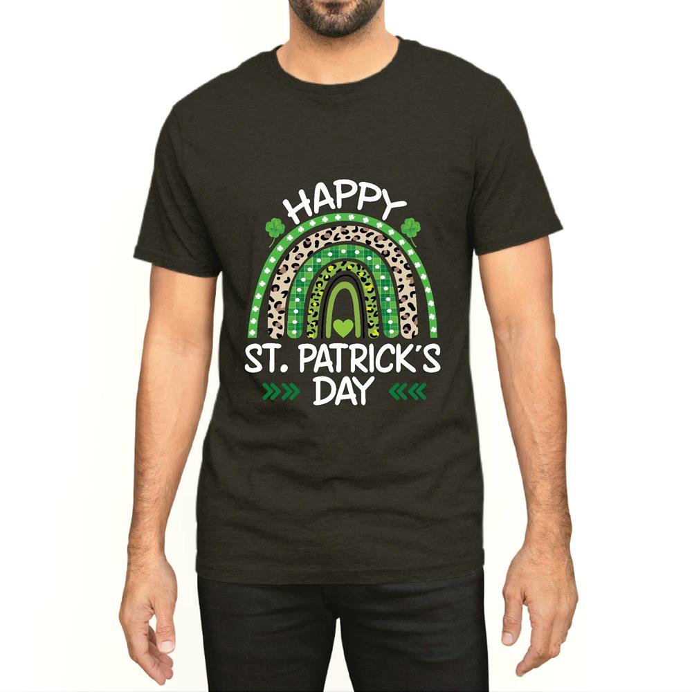 St Patricks Day Gift for Irish Fans Leopard Print Rainbow Men Women Black Multicolor T shirt