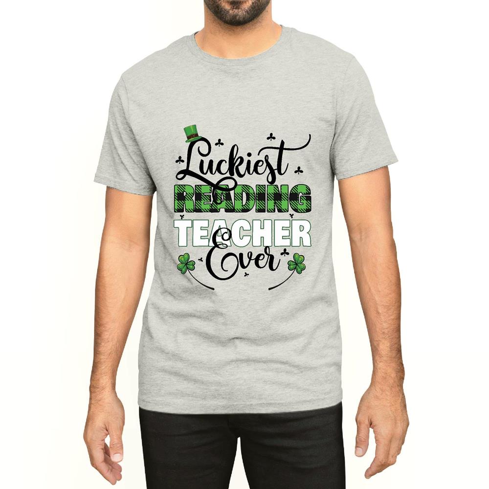 St Patricks Day Gift for Luckiest Reading Teacher Men Women White Gray Multicolor T shirt