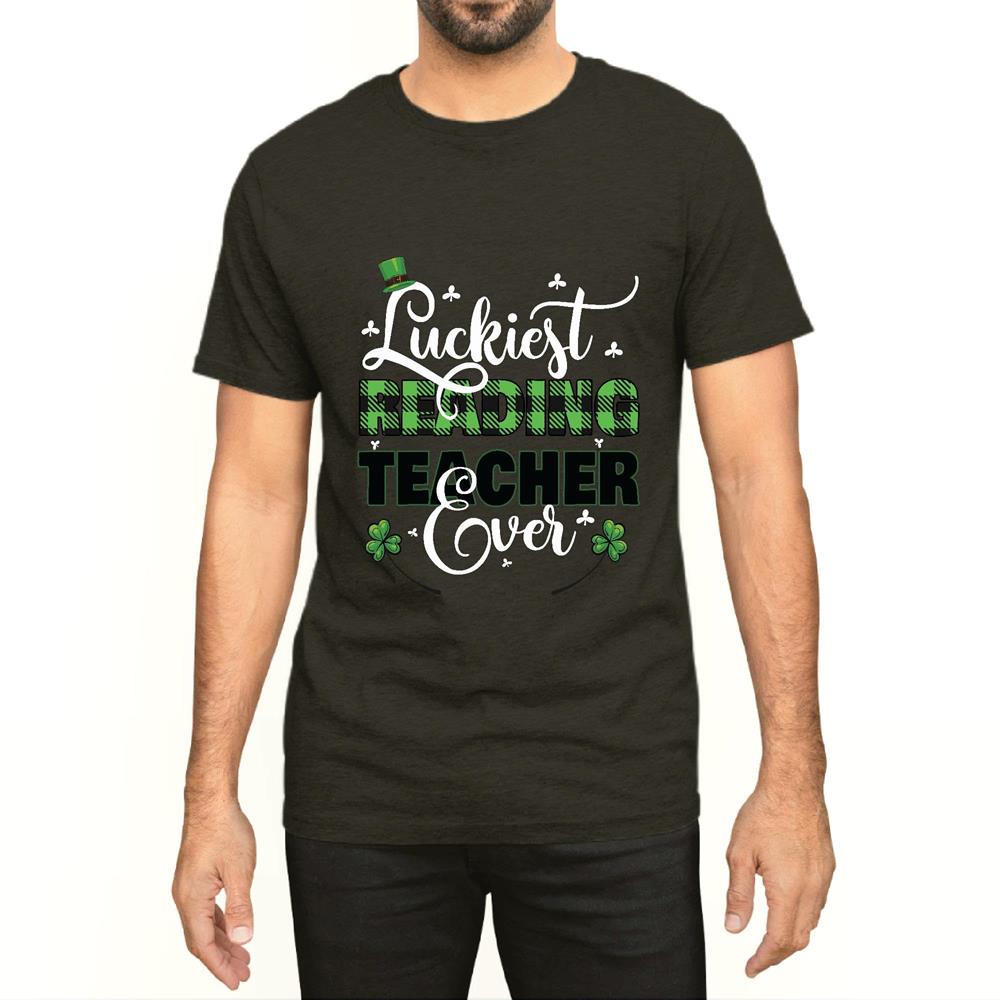 St Patricks Day Gift for Luckiest Reading Teacher Men Women Black Multicolor T shirt