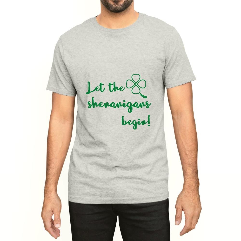 St Patricks day let the Shenanigans begin for Irish Four Leaf Clover Men Women White Gray Multicolor T shirt