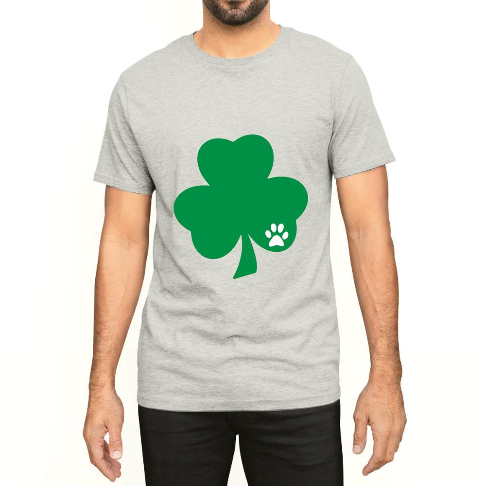 St Patricks day Shamrock with Pawprint Cat lover for Cat lover Men Women White Gray Multicolor T shirt