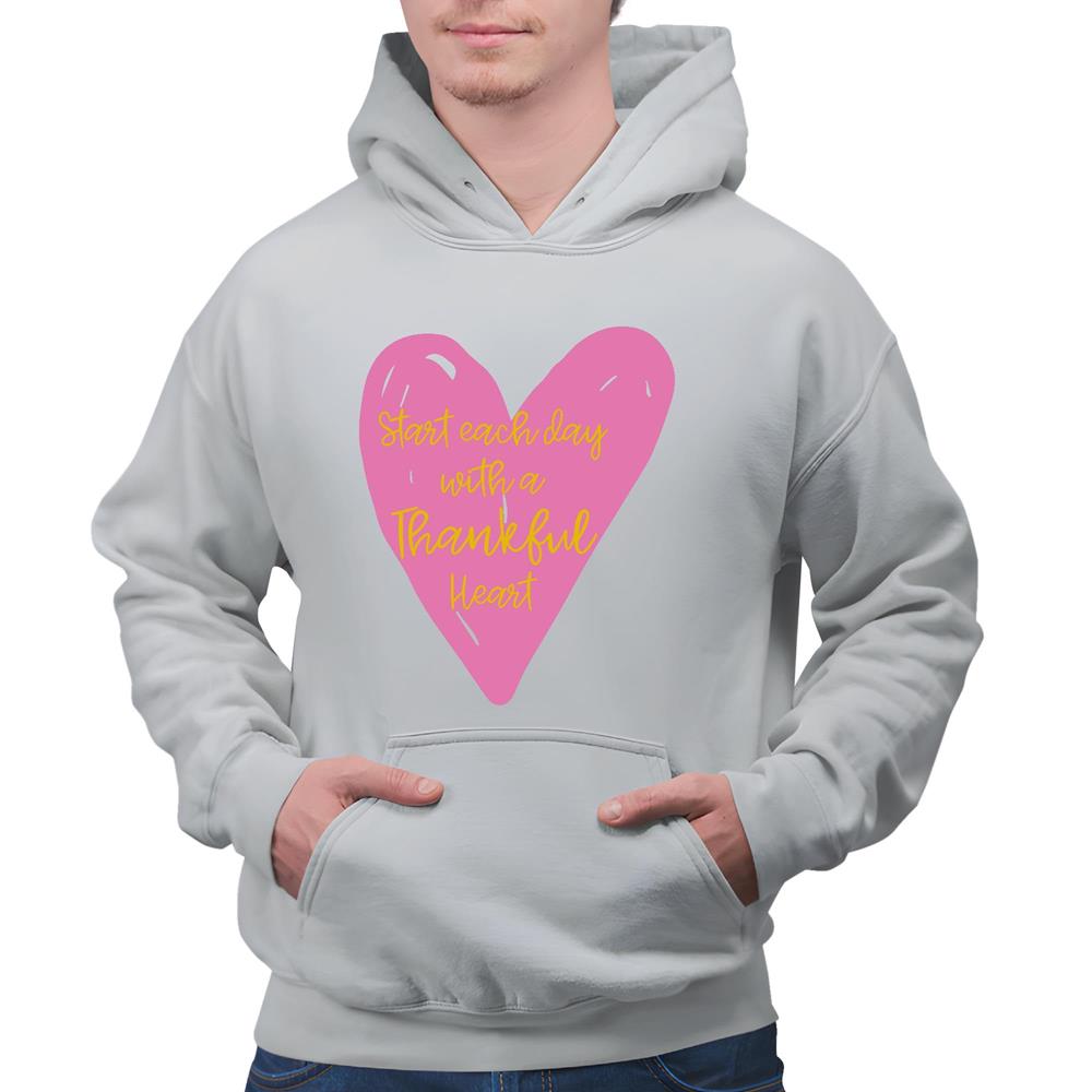 Start each day with a Thankful Heart quote funny motivation Christian Gray and Muticolor Unisex Hoodie
