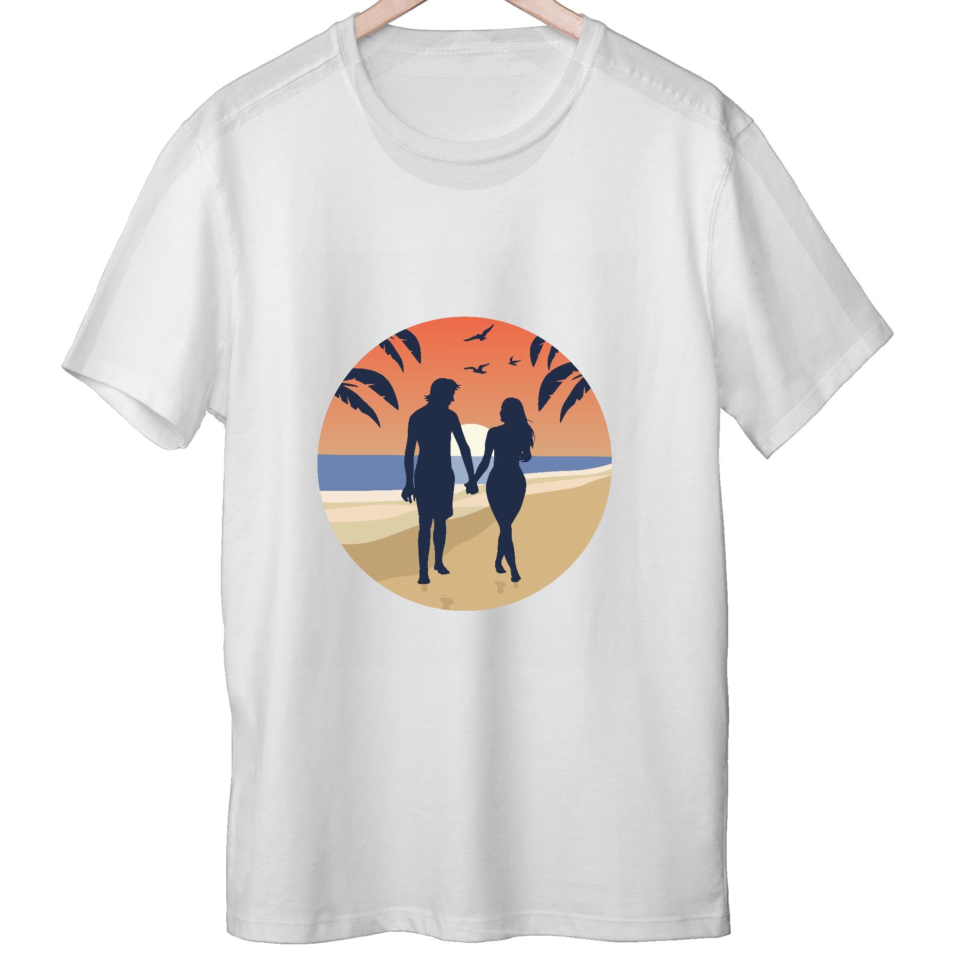 Stylish Beach Gift for Couples Walking on the Beach Together Men Women White Gray Multicolor T shirt