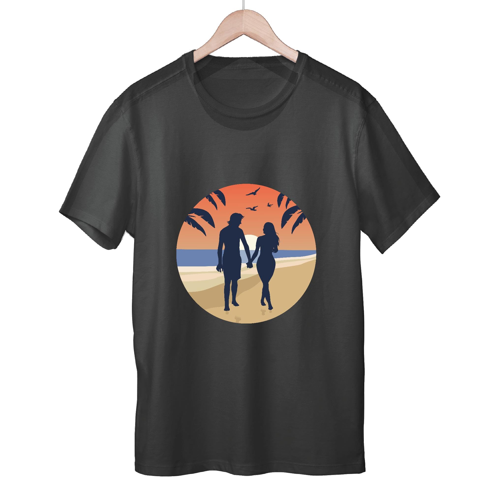Stylish Beach Gift for Couples Walking on the Beach Together Men Women Black Multicolor T shirt