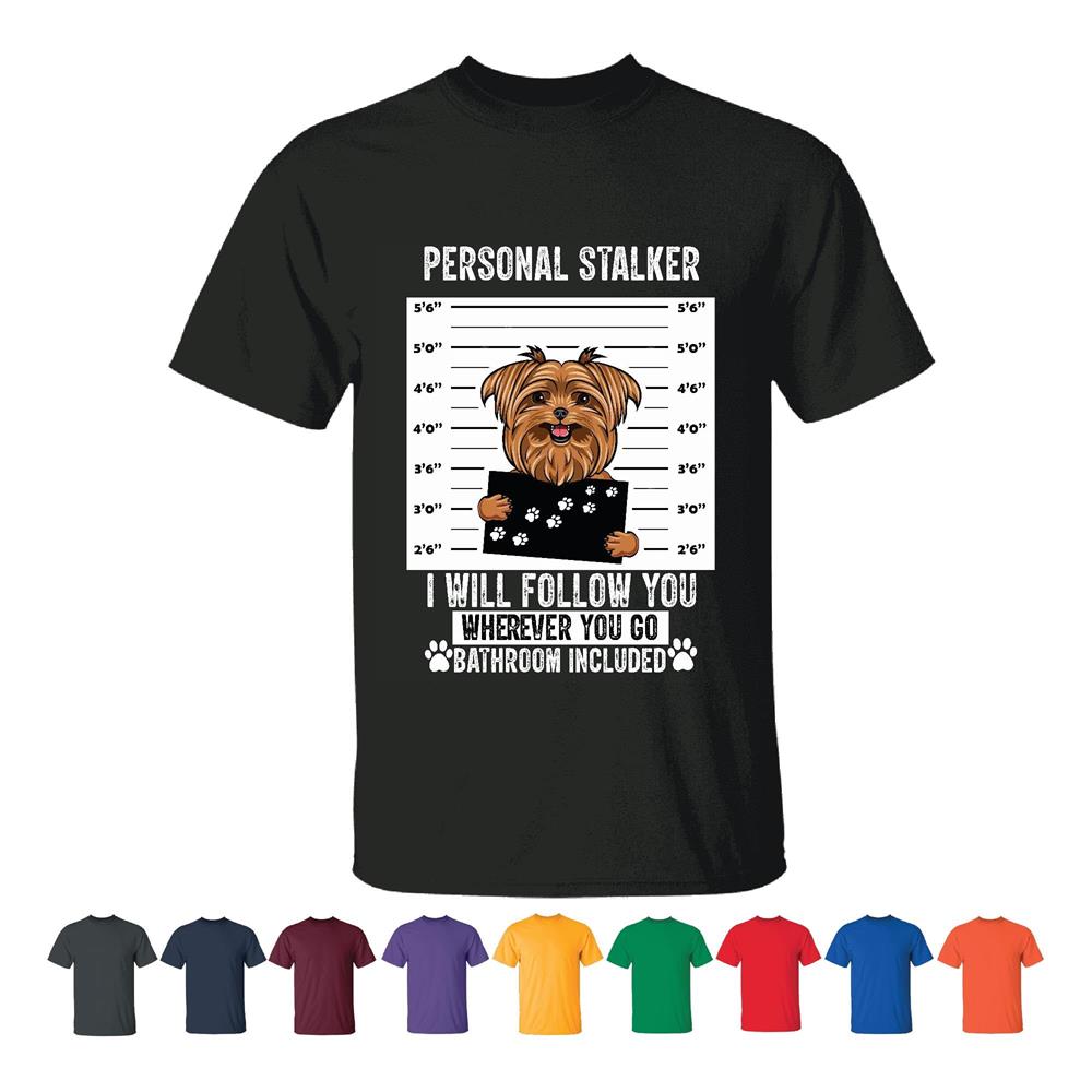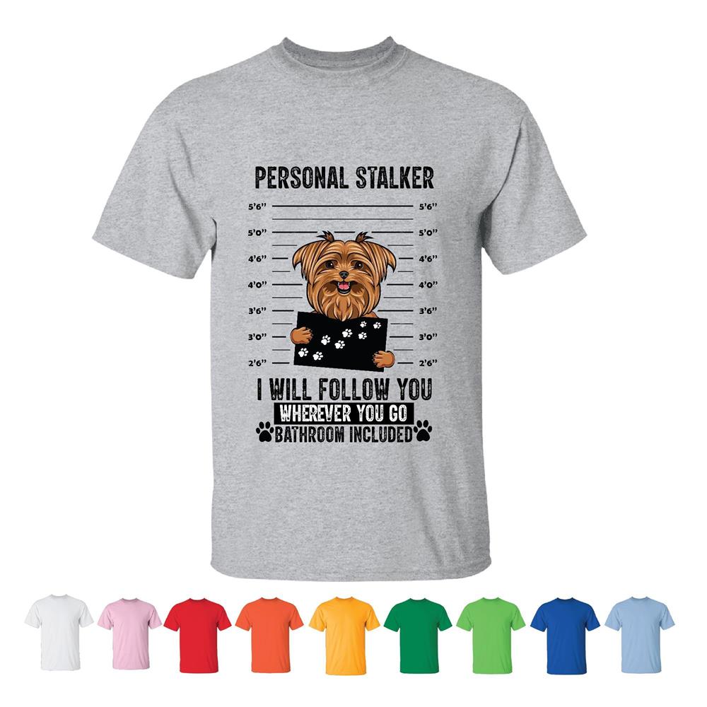 Stylish Unique Gift for Pet Lovers Yorkshire Terrier Dog I Will Follow You Wherever You Go Men Women White Gray T shirt