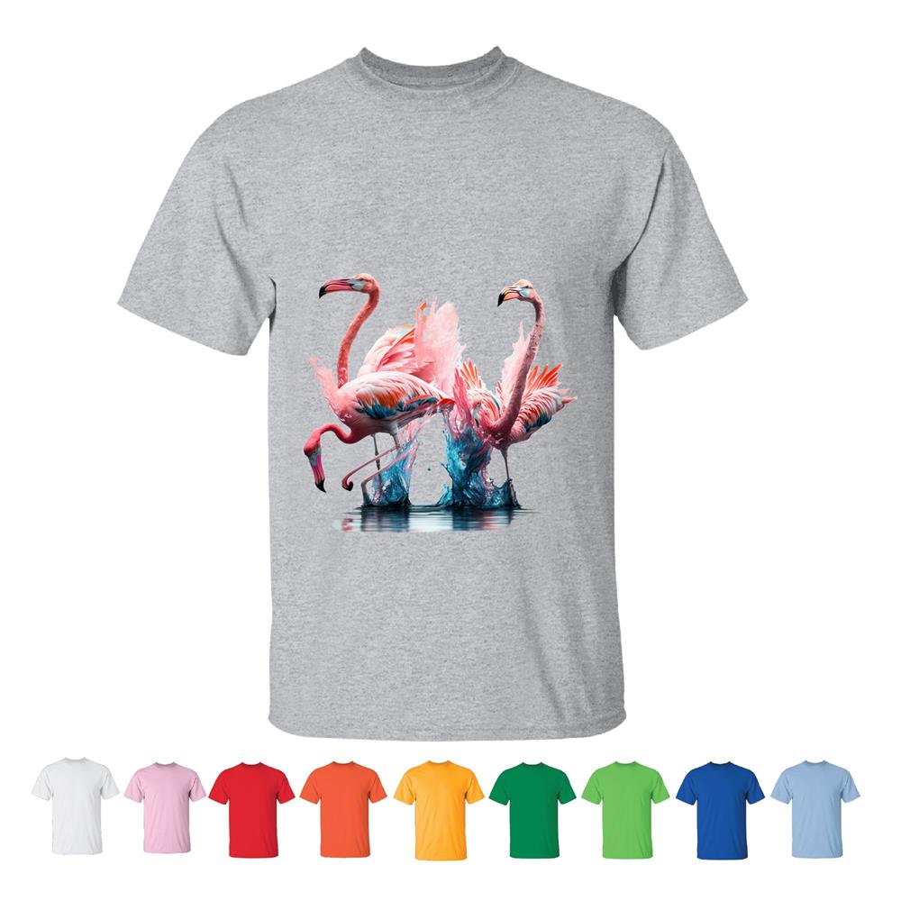 Summer Graphic Tropical Flamingos Dancing Pink Beautiful Men Women White Gray T shirt