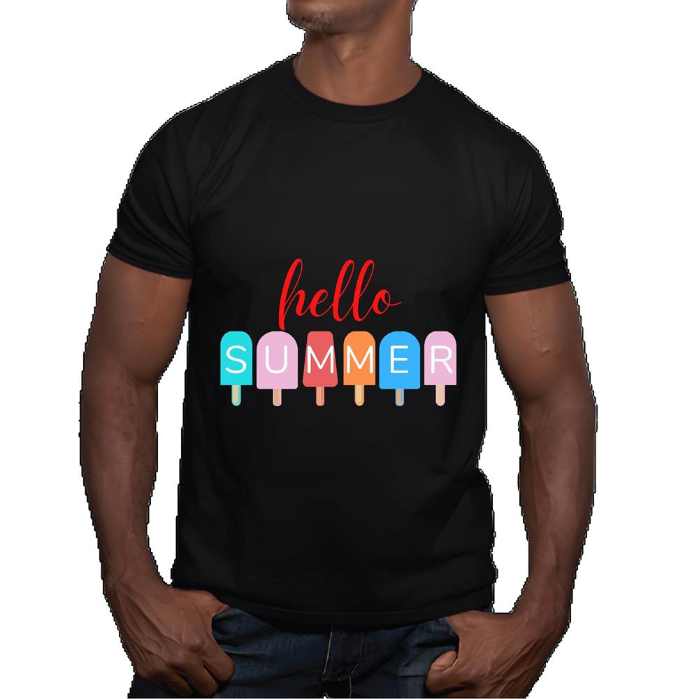 Summer Vacation Gift Idea Hello Ice Cream Men Women Black Multicolor T shirt