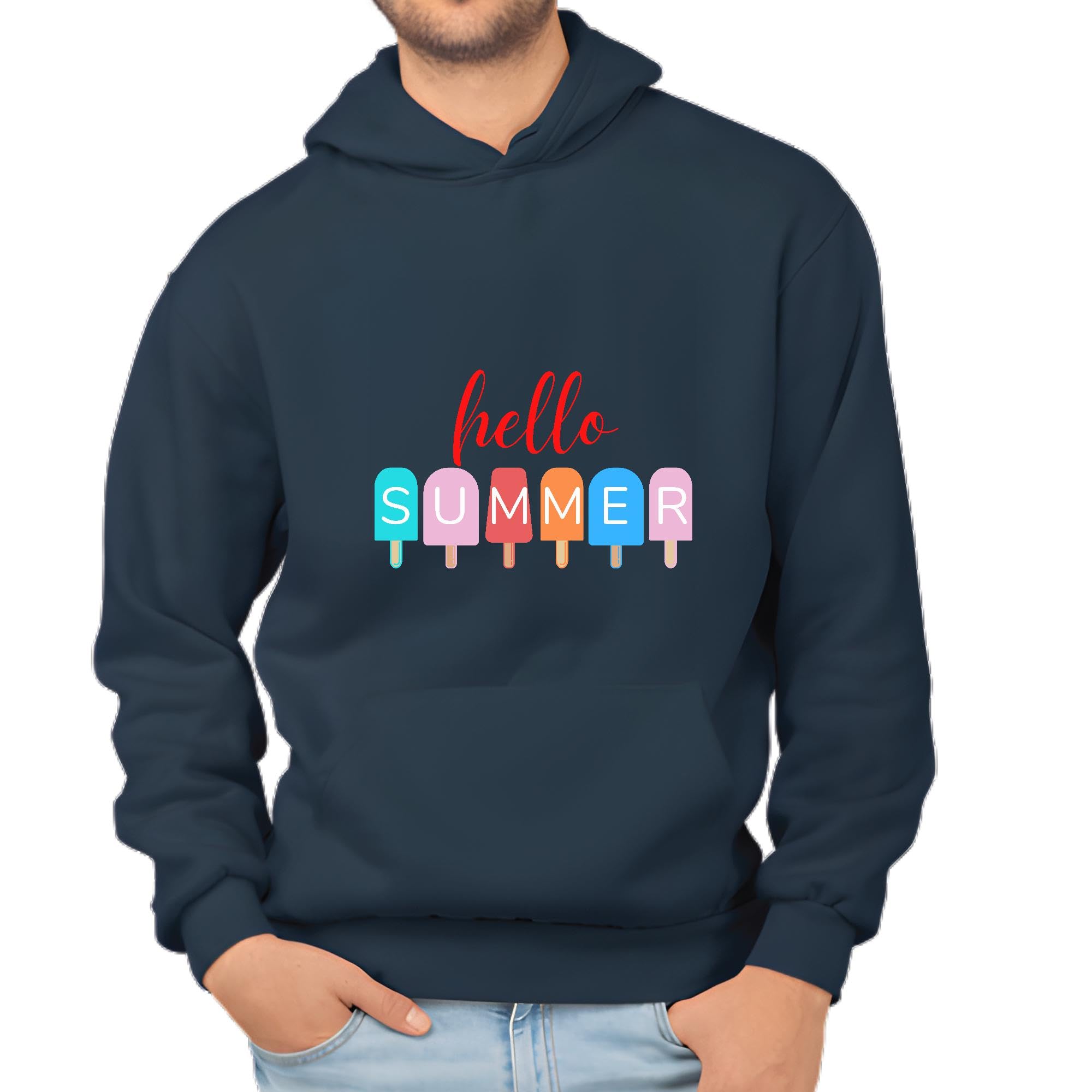 Summer Vacation Gift Idea Hello Ice Cream Navy and Muticolor Unisex Hoodie